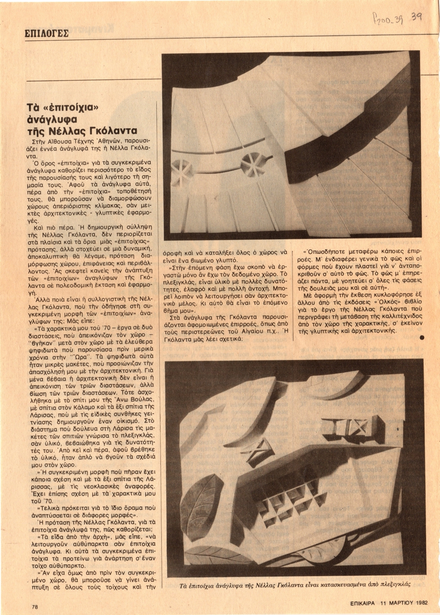 Spiteri-Veropoulou Ioanna (1920 - 2000) ; Xydis Alexandros (1918 - 2004) ; Christou Chrysanthos (1922 - 2016) ; Nella Golanta (1941 - 2023) ; Vasilis Kelaidis (1938) ; Voula Massoura (1936) ; Nikolaidou-Dentrinou Tonia (1927 - 2011) ; Nikolaidis Giorgos (1924 - 2001) ; Νάκης Παναγιωτίδης ; Pastra Nausica (1921 - 2011) ; Michailidou Mary (1940)