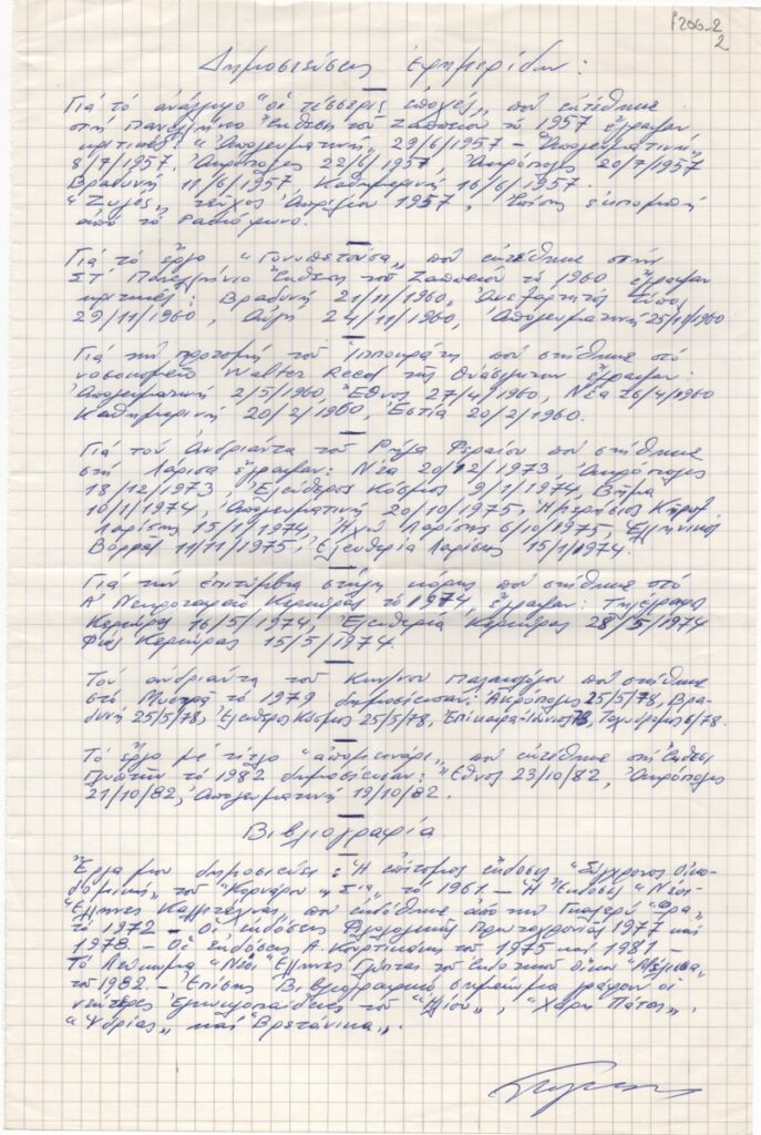 Charisiadis Dimitris A. (1911 - 1993) ; Hatzikyriakos-Ghika Nikos (1906 - 1994) ; Moralis Yannis (1916 - 2009) ; Zannas Pavlos (1929 - 1989) ; Pappas Giannis (1913 - 2005) ; Άγγελος Δεληβορριάς (1937 - 2019) ; Nelly's (1899 - 1998) ; Fiedler Franz (1885 - 1956) ; Άγγελος Σεραϊδάρης