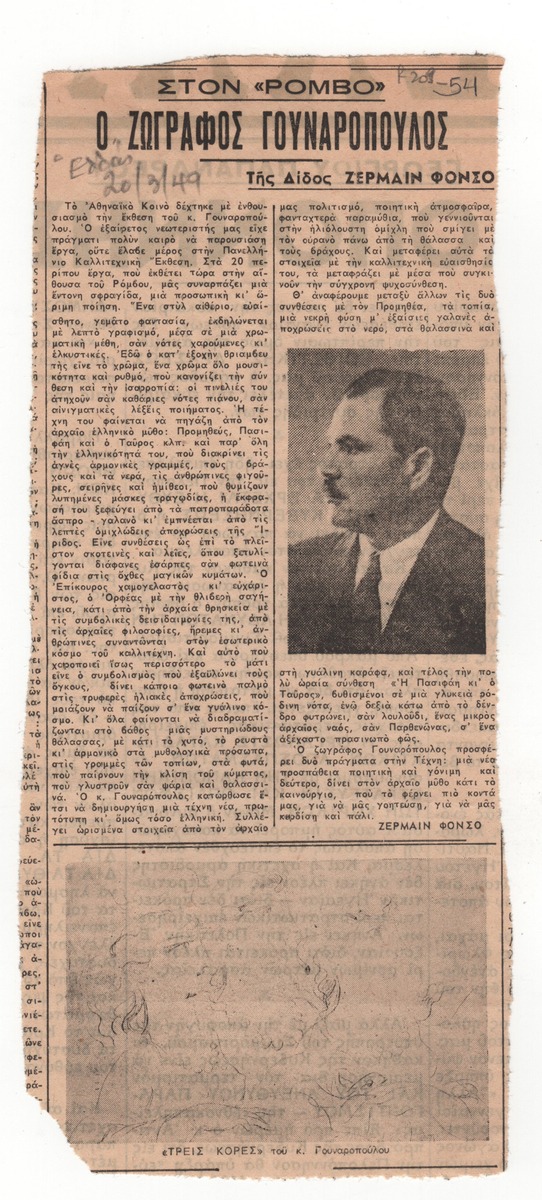 A clipping from the newspaper “I Hellas”, dated March 20, 1949, featuring a review of the artist’s painting exhibition in Athens.