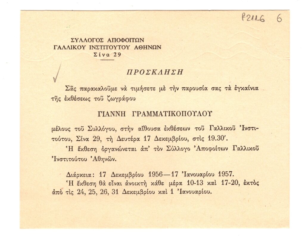 Spiteri-Veropoulou Ioanna (1920 - 2000) ; Moralis Yannis (1916 - 2009) ; Yannis Grammatikopoulos (1928) ; Christina Zervou (1937 - 1988) ; Mytaras Dimitris (1934 - 2017) ; Theodoros (Papadimitriou) (1931 - 2018) ; Karas Christos (1930 - 2023) ; Victor Vasarely ; Achilleas Droungas (1940) ; Τρύφων Καζάκος (1895 - 1966)