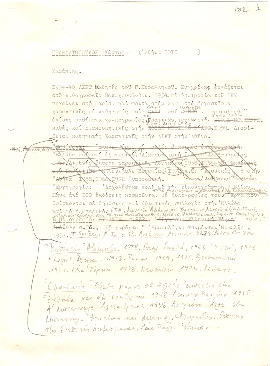 Nikos Engonopoulos (1907 - 1985) ; Semertzidis Valias (1911 - 1983) ; Spiteri-Veropoulou Ioanna (1920 - 2000) ; Vassiliou Spyros (1902 - 1985) ; Hatzikyriakos-Ghika Nikos (1906 - 1994) ; Raftopoulou Bella (1902 - 1992) ; Sikeliotis Giorgos (1917 - 1984) ; Iliopoulou-Rogan Dora (20th century) ; Gaitis Yannis (1923 - 1984) ; Mytaras Dimitris (1934 - 2017) ; Tetsis Panagiotis (1925 - 2016) ; Panayiotis Gravalos (1933 - 2015) ; Konstantinos Grammatopoulos (1916 - 2003) ; Varlamos Giorgos (1922 - 2013) ; Katsoulidis Takis (1933) ; Μάριος Λοβέρδος ; Malamos Kostas (1913) ; Manousakis Giorgos (1914 - 2003) ; Georgios Mavroidis (1912 - 2003) ; Malamou-Mitsea Ioanna (1913 - 2004) ; Preka-Stefanatou Meropi (1934 - 2025) ; Prekas Paris (1926 - 1999) ; Ευάγγελος Τερζόπουλος ; Iris Drakouli (1929)