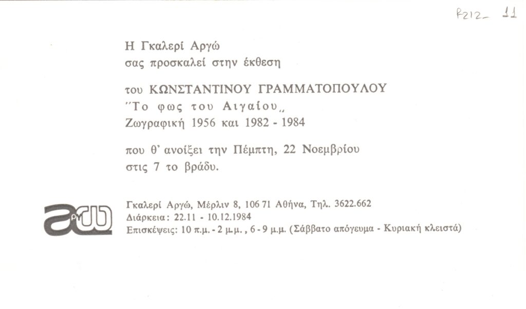 Nikos Engonopoulos (1907 - 1985) ; Semertzidis Valias (1911 - 1983) ; Spiteri-Veropoulou Ioanna (1920 - 2000) ; Vassiliou Spyros (1902 - 1985) ; Hatzikyriakos-Ghika Nikos (1906 - 1994) ; Raftopoulou Bella (1902 - 1992) ; Sikeliotis Giorgos (1917 - 1984) ; Iliopoulou-Rogan Dora (20th century) ; Gaitis Yannis (1923 - 1984) ; Mytaras Dimitris (1934 - 2017) ; Tetsis Panagiotis (1925 - 2016) ; Panayiotis Gravalos (1933 - 2015) ; Konstantinos Grammatopoulos (1916 - 2003) ; Varlamos Giorgos (1922 - 2013) ; Katsoulidis Takis (1933) ; Μάριος Λοβέρδος ; Malamos Kostas (1913) ; Manousakis Giorgos (1914 - 2003) ; Georgios Mavroidis (1912 - 2003) ; Malamou-Mitsea Ioanna (1913 - 2004) ; Preka-Stefanatou Meropi (1934 - 2025) ; Prekas Paris (1926 - 1999) ; Ευάγγελος Τερζόπουλος ; Iris Drakouli (1929)