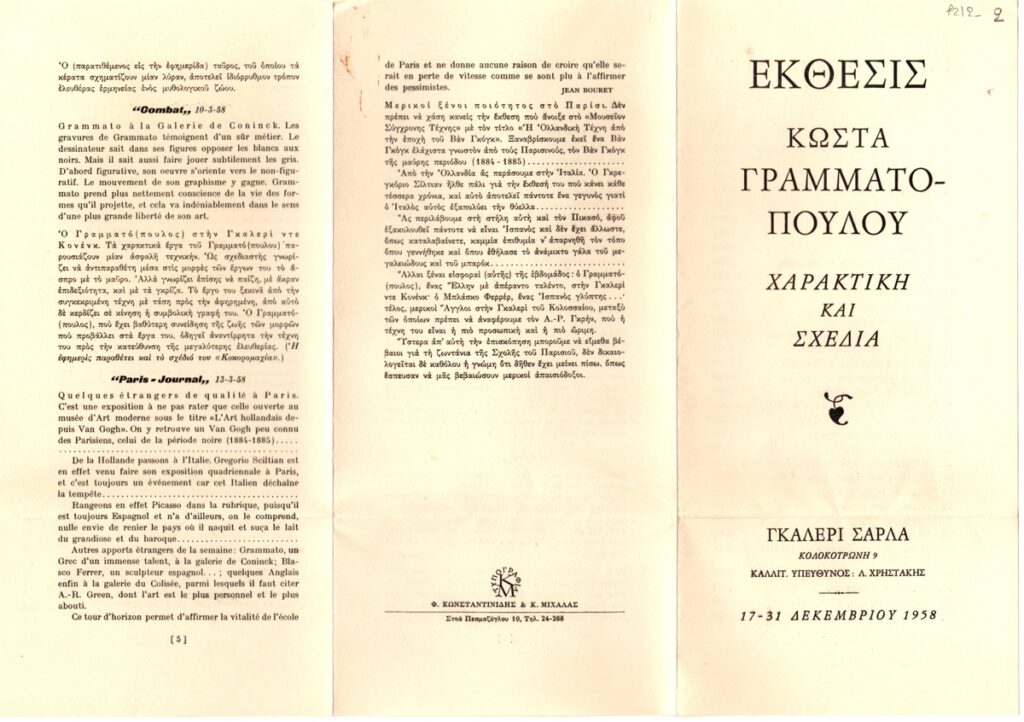 Nikos Engonopoulos (1907 - 1985) ; Spiteri-Veropoulou Ioanna (1920 - 2000) ; Vassiliou Spyros (1902 - 1985) ; Achilleas Aperghis (1909 - 1986) ; Gaitis Yannis (1923 - 1984) ; Panayiotis Gravalos (1933 - 2015) ; Konstantinos Grammatopoulos (1916 - 2003) ; Varlamos Giorgos (1922 - 2013) ; Katsoulidis Takis (1933) ; Μάριος Λοβέρδος ; Malamos Kostas (1913) ; Manousakis Giorgos (1914 - 2003) ; Georgios Mavroidis (1912 - 2003) ; Malamou-Mitsea Ioanna (1913 - 2004) ; Iris Drakouli (1929)