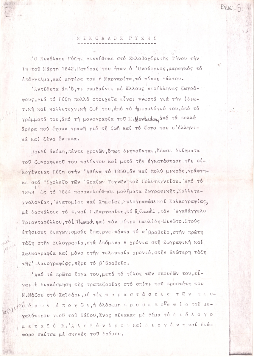 Parthenis Konstantinos (1878 - 1967) ; Aravantinos Panos (1886 - 1930) ; Gyzis Nikolaos (1842 - 1901) ; Galanis Dimitrios (1879 - 1966) ; Mitarakis Yannis (1898 - 1963) ; Kefallinos Yannis (1894 - 1957) ; Vasilis Fotiadis (1900 - 1975) ; Steris Yerassimos (1898 - 1987)