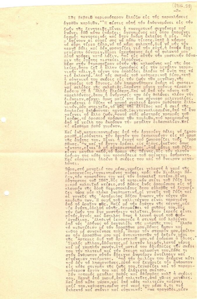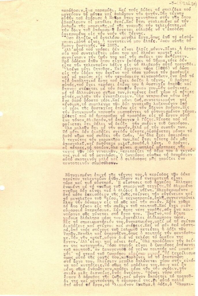 Handwritten transcription of a publication about the Greek painter Nikolaos Gyzis, titled “The life and art of Gyzis’, sourced from the March 1908 issue of the magazine “Panathenea”.
