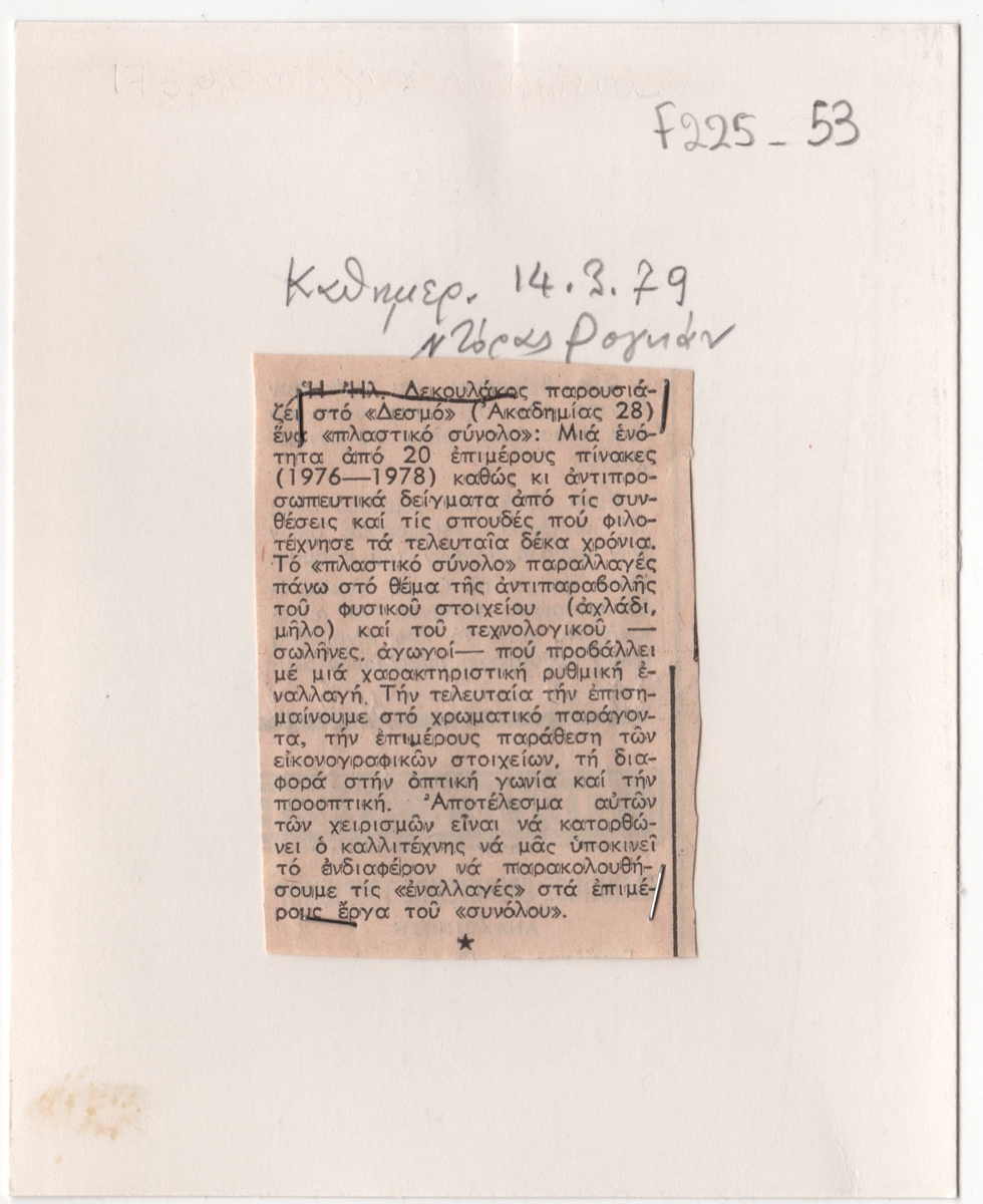 Ilias Dekoulakos (1929 - 1998) - Article writer