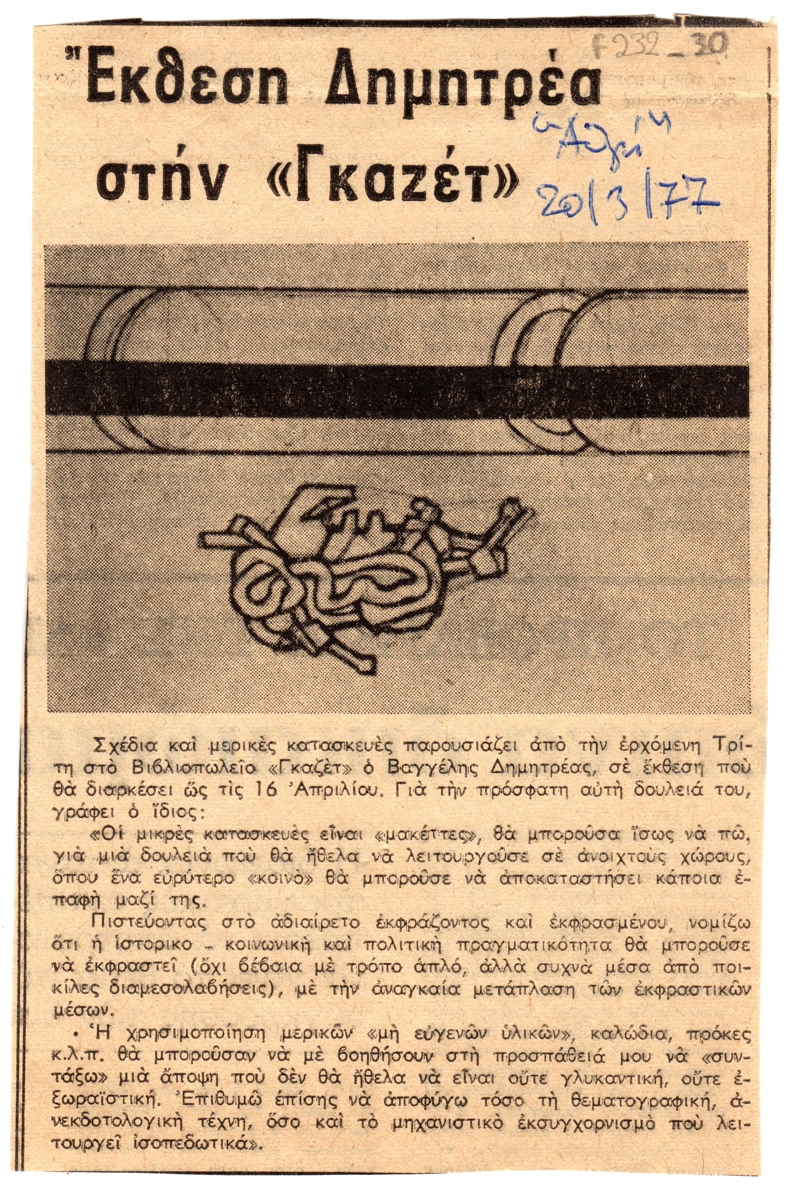 Sotiris Sorogas (1936) ; Giannis Valavanidis (1939 - 2017) ; Vaggelis Dimitreas (1934 - 2019) ; Karavela Maria (1938 - 2012) ; Βάσω Κυριάκη-Σίσκου ; Milios Giorgos (1935 - 2021) ; Yerassimos Steris (1898 - 1987)