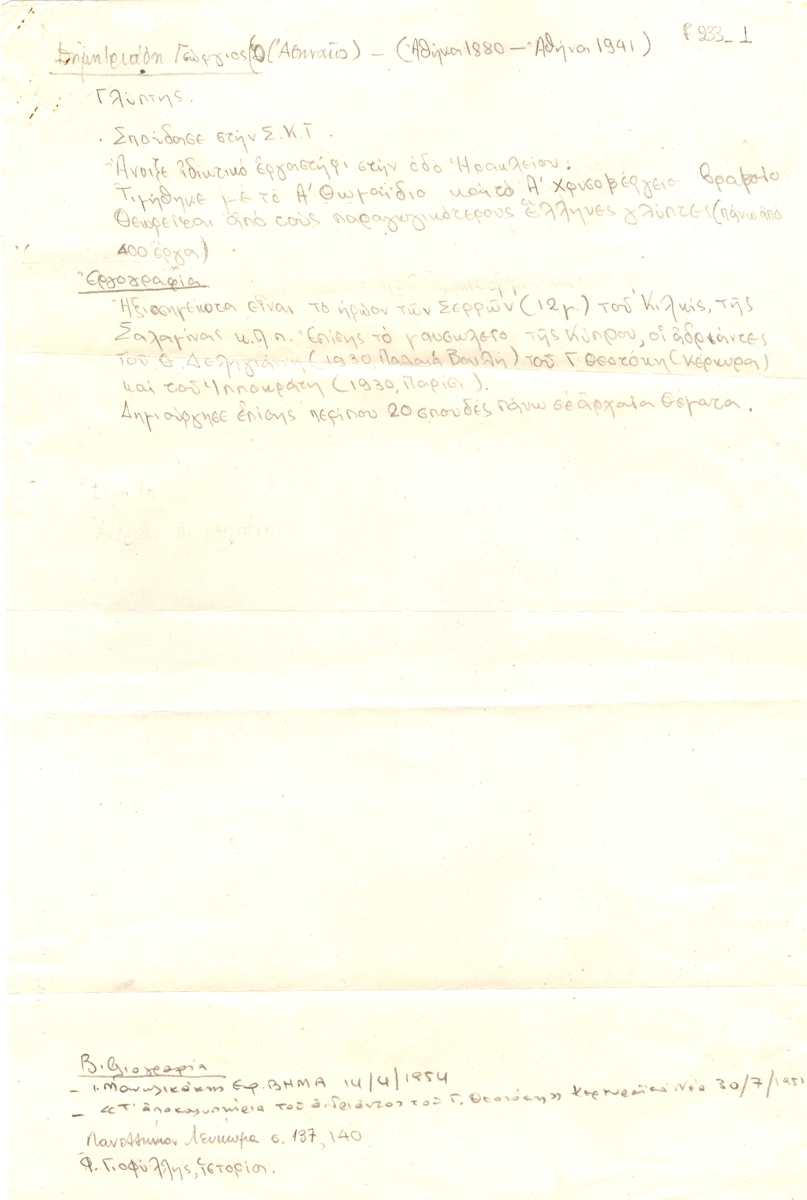 Charisiadis Dimitris A. (1911 - 1993) ; Hatzikyriakos-Ghika Nikos (1906 - 1994) ; Moralis Yannis (1916 - 2009) ; Zannas Pavlos (1929 - 1989) ; Pappas Giannis (1913 - 2005) ; Άγγελος Δεληβορριάς (1937 - 2019) ; Nelly's (1899 - 1998) ; Fiedler Franz (1885 - 1956) ; Άγγελος Σεραϊδάρης