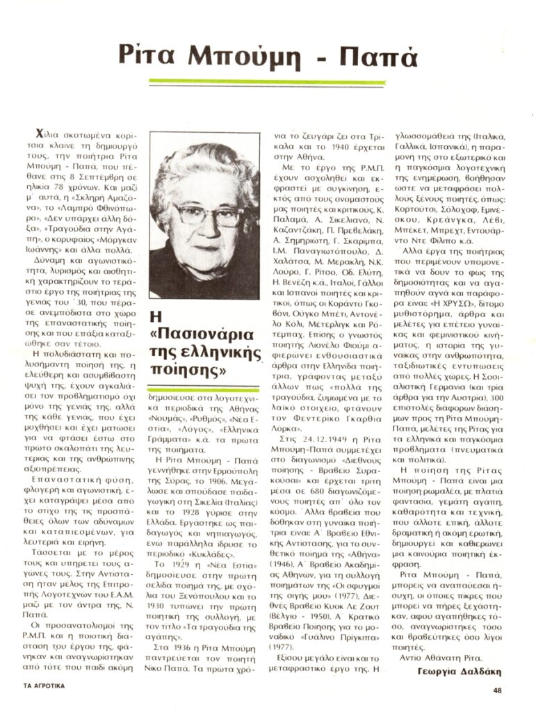 Teloglion Foundation of Arts ; Spiteris Tonis (1910 - 1986) ; Goulaki-Voutira Alexandra (20th century) ; Makris Kitsos (1917 - 1988) ; Mavrommatis Emmanouil (1935) ; Xydis Alexandros (1918 - 2004) ; Papanikolaou Miltiadis (1947) ; Pantermalis Dimitrios (1940) ; Mourelos Georgios (1912 - 1994) ; Christou Chrysanthos (1922 - 2016) ; Kazazi Sofia (20th century) ; Stefanidis Manos (1954) ; Varopoulou Eleni (1945 ) ; Kampouridis Charis (1950) ; Schina Athina ; Georgiadou-Kountoura Euthymia (20th century) ; Kotidis Antonis (1949) ; Charalampidis Alkis (20th century) ; Christianopoulos Ntinos (1931 - 2020) ; Nikonanos Nikos (20th century) ; Fatourou-Isychaki Kanto (20th century) ; Skaltsa Matoura (20th century) ; Sachini Aggeliki (20th century) ; Nikoulis G. (20th century) ; Ioannidis Andreas (1950) ; Pappa Sania (1957)