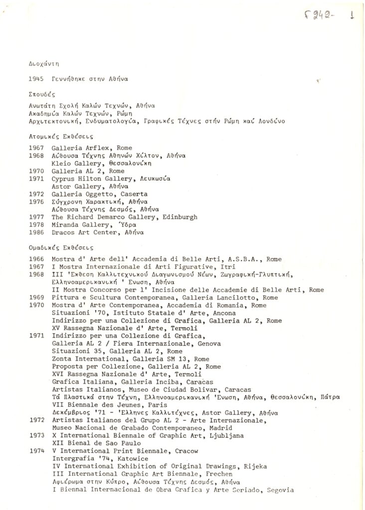 Spiteri-Veropoulou Ioanna (1920 - 2000) ; Sotiris Sorogas (1936) ; Diochanti (1945) ; Michalis Katzourakis ; Vernadaki Eleni (1933) ; Panayiotis Gravalos (1933 - 2015) ; Niki Kanagini (1933 - 2008) ; Kessanlis Nikos (1930 - 2004) ; Dimitris Kontos (1931 - 1996) ; Michas Yannis (1938 - 2008) ; Nikolaidis Giorgos (1924 - 2001) ; Λήδα Παπακωνσταντίνου-Hughes (1945) ; Χρήστος Καρράς