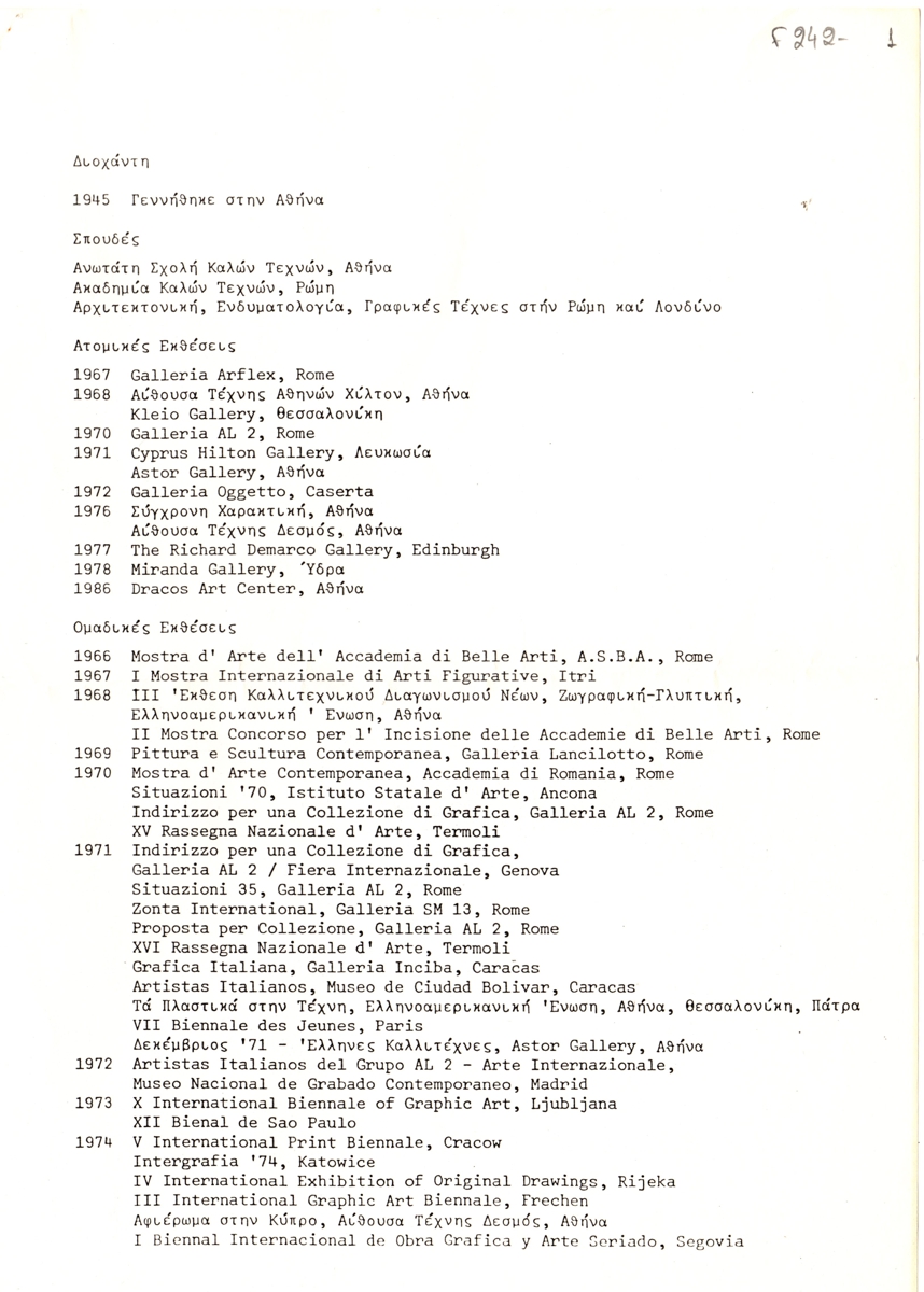 Spiteri-Veropoulou Ioanna (1920 - 2000) ; Andreadi Efi (20th century) ; Touyas Giorgos (1922 - 1994) ; Sotiris Sorogas (1936) ; Diochanti (1945) ; Romanos Chryssa (1931 - 2006) ; Zongopoulos Giorgos (1903 - 2004) ; Achilleas Aperghis (1909 - 1986) ; Xagoraris Pandelis (1929 - 2000) ; Ilias Dekoulakos (1929 - 1998) ; Vernadaki Eleni (1933) ; Niki Kanagini (1933 - 2008) ; Kessanlis Nikos (1930 - 2004) ; Loucopoulos, Clearchos (1906 - 1995) ; Bouteas Yannis (1941 - 2026) ; Bia Davou (1932 - 1996)