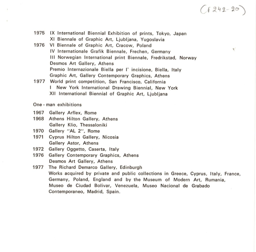 Spiteri-Veropoulou Ioanna (1920 - 2000) ; Sotiris Sorogas (1936) ; Diochanti (1945) ; Michalis Katzourakis ; Vernadaki Eleni (1933) ; Panayiotis Gravalos (1933 - 2015) ; Niki Kanagini (1933 - 2008) ; Kessanlis Nikos (1930 - 2004) ; Dimitris Kontos (1931 - 1996) ; Michas Yannis (1938 - 2008) ; Nikolaidis Giorgos (1924 - 2001) ; Λήδα Παπακωνσταντίνου-Hughes (1945) ; Χρήστος Καρράς
