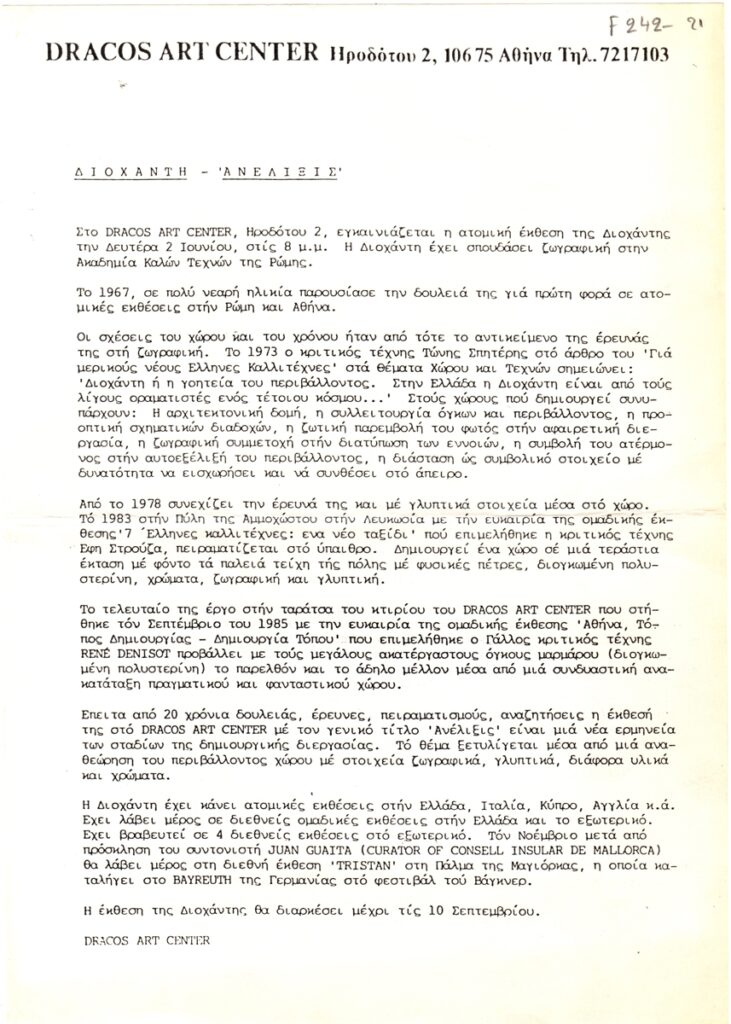 Spiteri-Veropoulou Ioanna (1920 - 2000) ; Andreadi Efi (20th century) ; Touyas Giorgos (1922 - 1994) ; Sotiris Sorogas (1936) ; Diochanti (1945) ; Romanos Chryssa (1931 - 2006) ; Zongopoulos Giorgos (1903 - 2004) ; Achilleas Aperghis (1909 - 1986) ; Xagoraris Pandelis (1929 - 2000) ; Ilias Dekoulakos (1929 - 1998) ; Vernadaki Eleni (1933) ; Niki Kanagini (1933 - 2008) ; Kessanlis Nikos (1930 - 2004) ; Loucopoulos, Clearchos (1906 - 1995) ; Bouteas Yannis (1941 - 2026) ; Bia Davou (1932 - 1996)