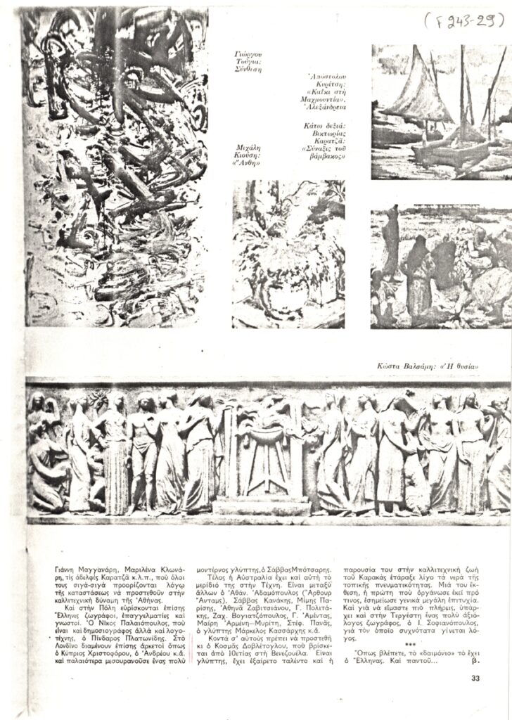 Spiteri-Veropoulou Ioanna (1920 - 2000) ; Andreadi Efi (20th century) ; Mavrommatis Emmanouil (1935) ; Touyas Giorgos (1922 - 1994) ; Sorogas Sotiris (1936) ; Diochanti (1945) ; Μαργαρίτα Λυμπεράκη ; Michalis Katzourakis ; Argyriou Alexandros (1921 - 2009) ; Zongolopoulou Eleni (1909 - 1993) ; Sachinis Nikos (1924 - 1989) ; Simossi Gabriela (1926 - 1999) ; Constantinou Dimitris (1924 - 2010) ; Zouni Opy (1941 - 2008) ; Romanos Chryssa (1931 - 2006) ; (Panagopoulos) Daniel (1924 - 2008) ; Aperghis Achilleas (1909 - 1986) ; Koulentianos Kostas (1918 - 1995) ; Gaitis Yannis (1923 - 1984) ; Georgousopoulos Kostas (1937 - 2024) ; Kalas Nikolas (1907 - 1988) ; Mytaras Dimitris (1934 - 2017) ; Valavanidis Giannis (1939 - 2017) ; Xagoraris Pandelis (1929 - 2000) ; Dekoulakos Ilias (1929 - 1998) ; Karas Christos (1930 - 2023) ; Vernadaki Eleni (1933) ; Takis (Vassilakis Panayiotis) (1925 - 2019) ; Σάββας Κονταράτος ; Manoledaki-Lazaridi Ioanna (1935) ; Philolaos (Tloupas) (1923 - 2010) ; Gravalos Panayiotis (1933 - 2015) ; Droungas Achilleas (1940) ; Iliadis Kostas (1903 - 1991) ; Kanagini Niki (1933 - 2008) ; Kanakakis Lefteris (1934 - 1985) ; Karachalios Kostas (1923 - 2007) ; Kessanlis Nikos (1930 - 2004) ; Kokkinides Demosthenes (1929 - 2020) ; Kontos Dimitris (1931 - 1996) ; Aris Konstantinidis (1913 - 1993) ; Eirini Apergi (1921 - 1994) ; Lazogkas Giorgos (1945 - 2022) ; Logothetis Stathis (1925 - 1997) ; Loucopoulos, Clearchos (1906 - 1995) ; Molfesis Iasson (1925 - 2009) ; Κώστας Αξελός (1924 - 2010) ; Bouteas Yannis (1941 - 2026) ; Nikolaidis Giorgos (1924 - 2001) ; Davou Bia (1932 - 1996) ; Νίκος Φωκάς (1927 - 2021) ; Ρένα Παπασπύρου-Βαρδάκα (1938) ; Pastra Nausica (1921 - 2011) ; Φίλιππος Ηλιού (1931 - 2004) ; Νίκος Γ. Σβορώνος (1911 - 1989) ; Νίκος Χατζηνικολάου, ιστορικός (1938) ; Λίλα Μαραγκού (1938) ; Τίτος Πατρίκιος (1928) ; Χ. Κληρίδη ; Θ. Ρετζής