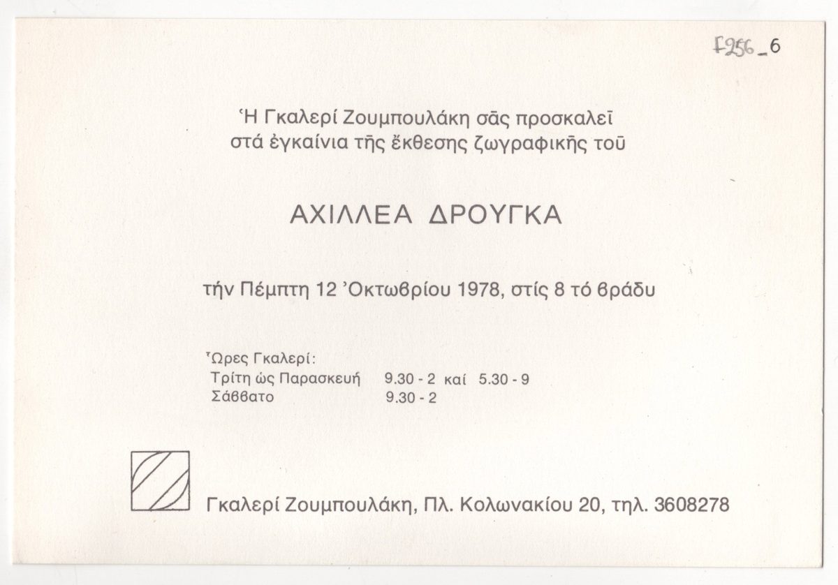 Spiteri-Veropoulou Ioanna (1920 - 2000) ; Moralis Yannis (1916 - 2009) ; Yannis Grammatikopoulos (1928) ; Christina Zervou (1937 - 1988) ; Mytaras Dimitris (1934 - 2017) ; Theodoros (Papadimitriou) (1931 - 2018) ; Karas Christos (1930 - 2023) ; Victor Vasarely ; Achilleas Droungas (1940) ; Τρύφων Καζάκος (1895 - 1966)