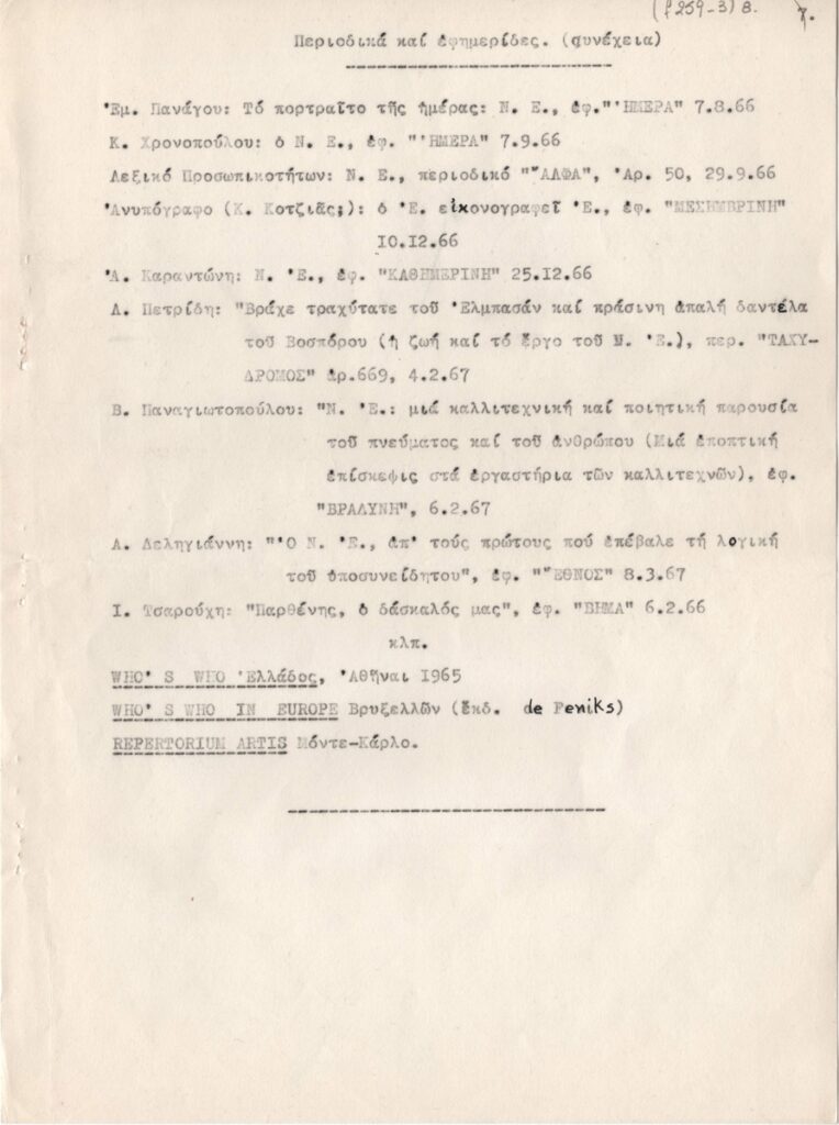 Stathopoulou Eleni (1914 - 2016) ; Engonopoulos Nikos (1907 - 1985) ; Prokopiou Angelos G. (1909 - 1967) ; Marthas Takis (1905 - 1965) ; Moralis Yannis (1916 - 2009) ; Sikeliotis Giorgos (1917 - 1984) ; Gaitis Yannis (1923 - 1984) ; Gioldasis Dimitrios (1897 - 1993) ; Ρέα Λεονταρίτου ; Maltezos Yannis (1915 - 1987) ; Papa Aglaïa (1904 - 1984) ; Δημήτρης Χυτήρης (1921 - 1996) ; Konstandinidi Eleni (1910 - 1988) ; Λάζαρος Ουσταπασίδης