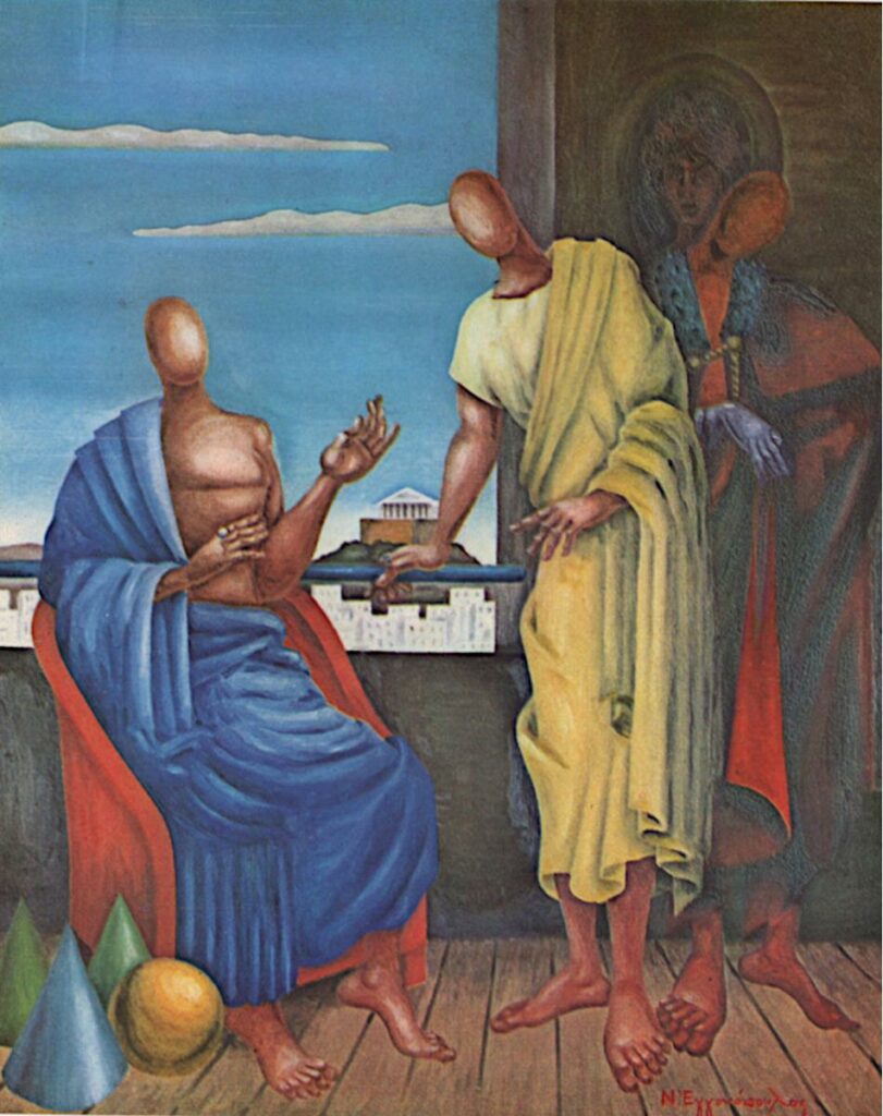 Nikos Engonopoulos (1907 - 1985) ; Semertzidis Valias (1911 - 1983) ; Spiteri-Veropoulou Ioanna (1920 - 2000) ; Vassiliou Spyros (1902 - 1985) ; Hatzikyriakos-Ghika Nikos (1906 - 1994) ; Raftopoulou Bella (1902 - 1992) ; Sikeliotis Giorgos (1917 - 1984) ; Iliopoulou-Rogan Dora (20th century) ; Gaitis Yannis (1923 - 1984) ; Mytaras Dimitris (1934 - 2017) ; Tetsis Panagiotis (1925 - 2016) ; Panayiotis Gravalos (1933 - 2015) ; Konstantinos Grammatopoulos (1916 - 2003) ; Varlamos Giorgos (1922 - 2013) ; Katsoulidis Takis (1933) ; Μάριος Λοβέρδος ; Malamos Kostas (1913) ; Manousakis Giorgos (1914 - 2003) ; Georgios Mavroidis (1912 - 2003) ; Malamou-Mitsea Ioanna (1913 - 2004) ; Preka-Stefanatou Meropi (1934 - 2025) ; Prekas Paris (1926 - 1999) ; Ευάγγελος Τερζόπουλος ; Iris Drakouli (1929)