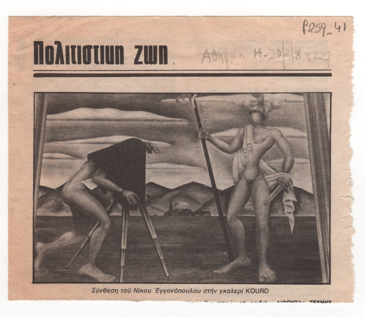 Nikos Engonopoulos (1907 - 1985) ; Semertzidis Valias (1911 - 1983) ; Spiteri-Veropoulou Ioanna (1920 - 2000) ; Vassiliou Spyros (1902 - 1985) ; Hatzikyriakos-Ghika Nikos (1906 - 1994) ; Raftopoulou Bella (1902 - 1992) ; Sikeliotis Giorgos (1917 - 1984) ; Iliopoulou-Rogan Dora (20th century) ; Gaitis Yannis (1923 - 1984) ; Mytaras Dimitris (1934 - 2017) ; Tetsis Panagiotis (1925 - 2016) ; Panayiotis Gravalos (1933 - 2015) ; Konstantinos Grammatopoulos (1916 - 2003) ; Varlamos Giorgos (1922 - 2013) ; Katsoulidis Takis (1933) ; Μάριος Λοβέρδος ; Malamos Kostas (1913) ; Manousakis Giorgos (1914 - 2003) ; Georgios Mavroidis (1912 - 2003) ; Malamou-Mitsea Ioanna (1913 - 2004) ; Preka-Stefanatou Meropi (1934 - 2025) ; Prekas Paris (1926 - 1999) ; Ευάγγελος Τερζόπουλος ; Iris Drakouli (1929)