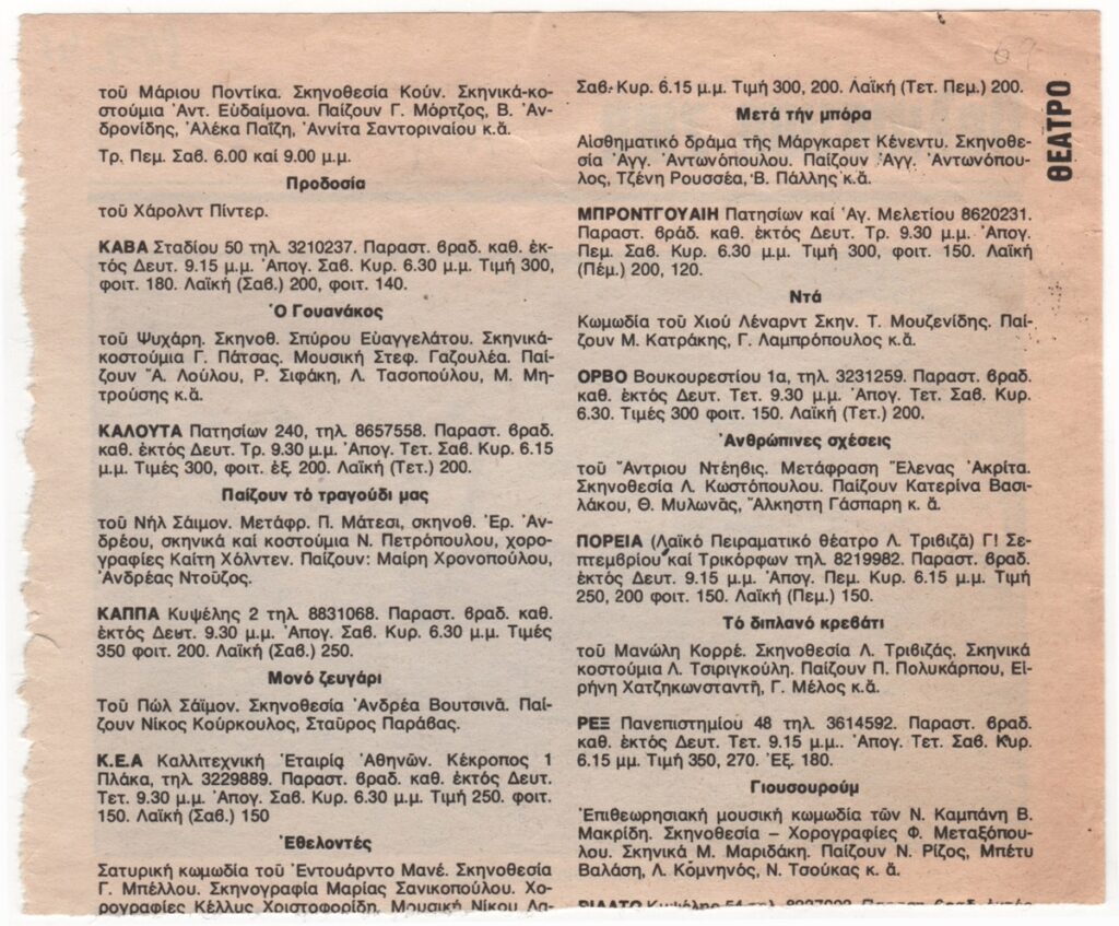 Stathopoulou Eleni (1914 - 2016) ; Nikos Engonopoulos (1907 - 1985) ; Prokopiou Angelos G. (1909 - 1967) ; Marthas Takis (1905 - 1965) ; Moralis Yannis (1916 - 2009) ; Sikeliotis Giorgos (1917 - 1984) ; Gaitis Yannis (1923 - 1984) ; Gioldasis Dimitrios (1897 - 1993) ; Ρέα Λεονταρίτου ; Maltezos Yannis (1915 - 1987) ; Aglaia Papa (1904 - 1984) ; Δημήτρης Χυτήρης (1921 - 1996) ; Konstandinidi Eleni (1910 - 1988) ; Λάζαρος Ουσταπασίδης