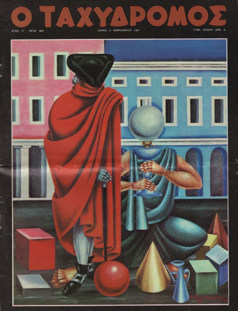 Issue of the magazine “Taxydromos”, dated February 4, 1967, dedicated to the Greek painter Nikos Engonopoulos. It contains an article by Lisa Petridi titled “The life and work of N. Engonopoulos”.