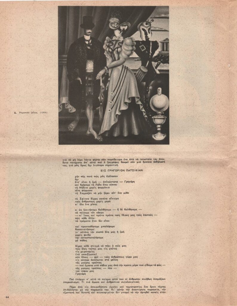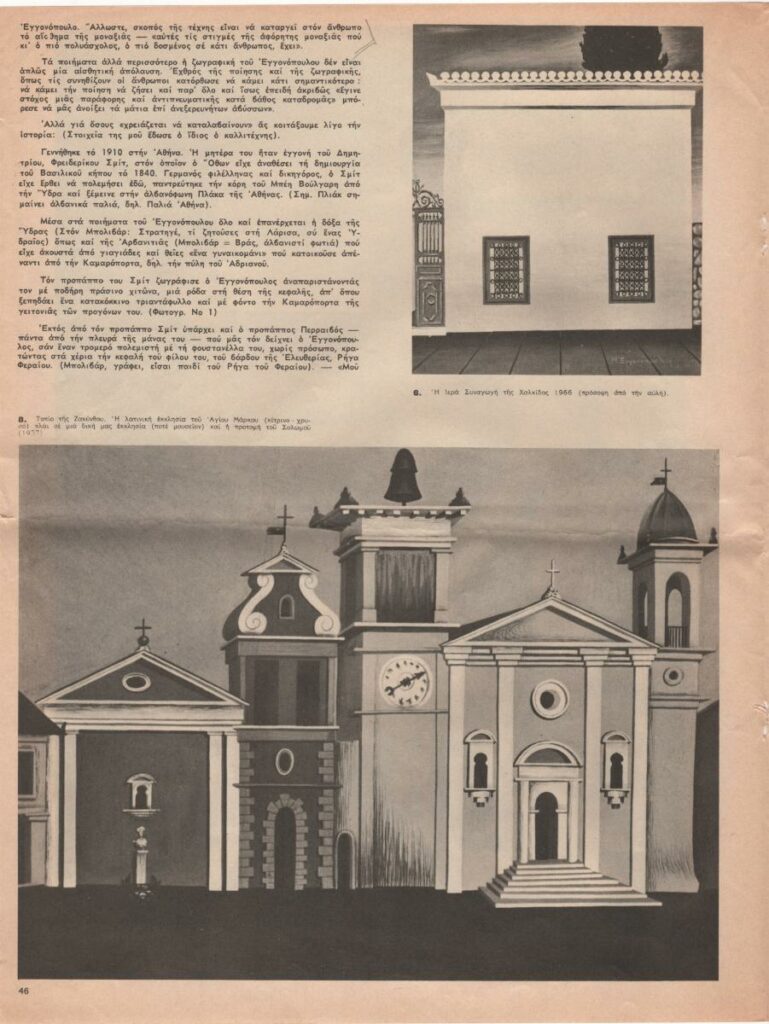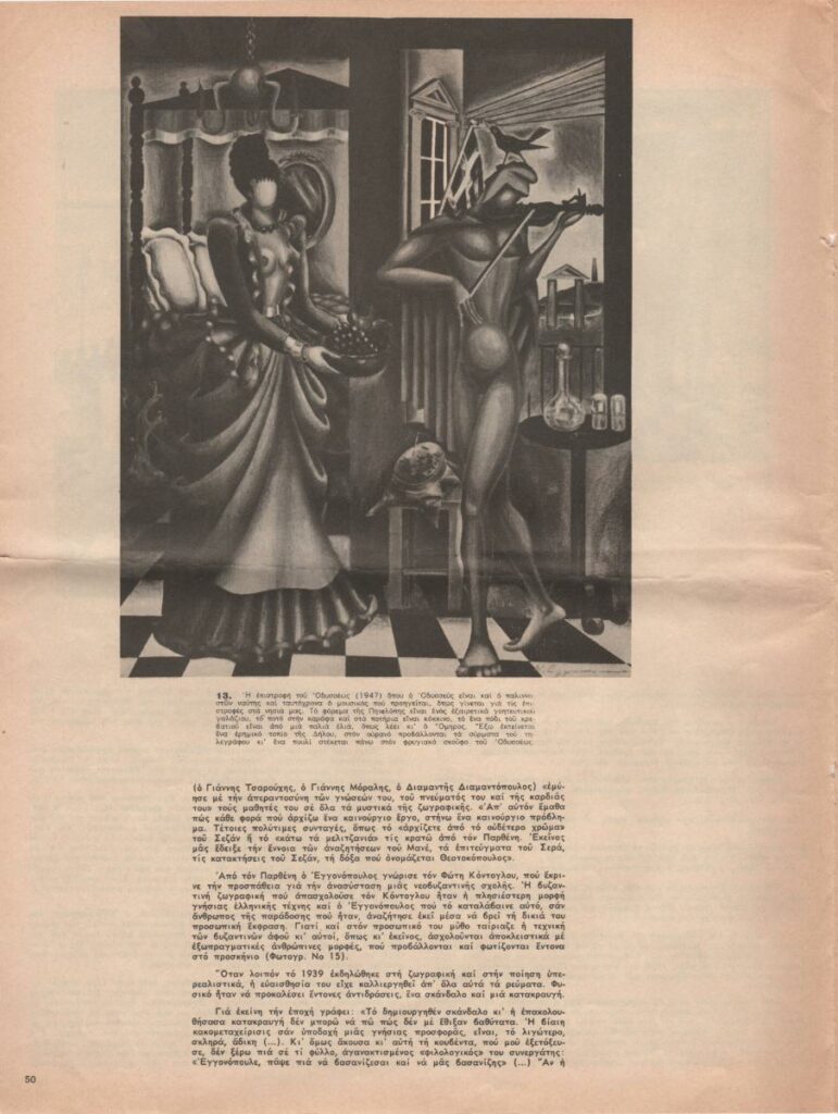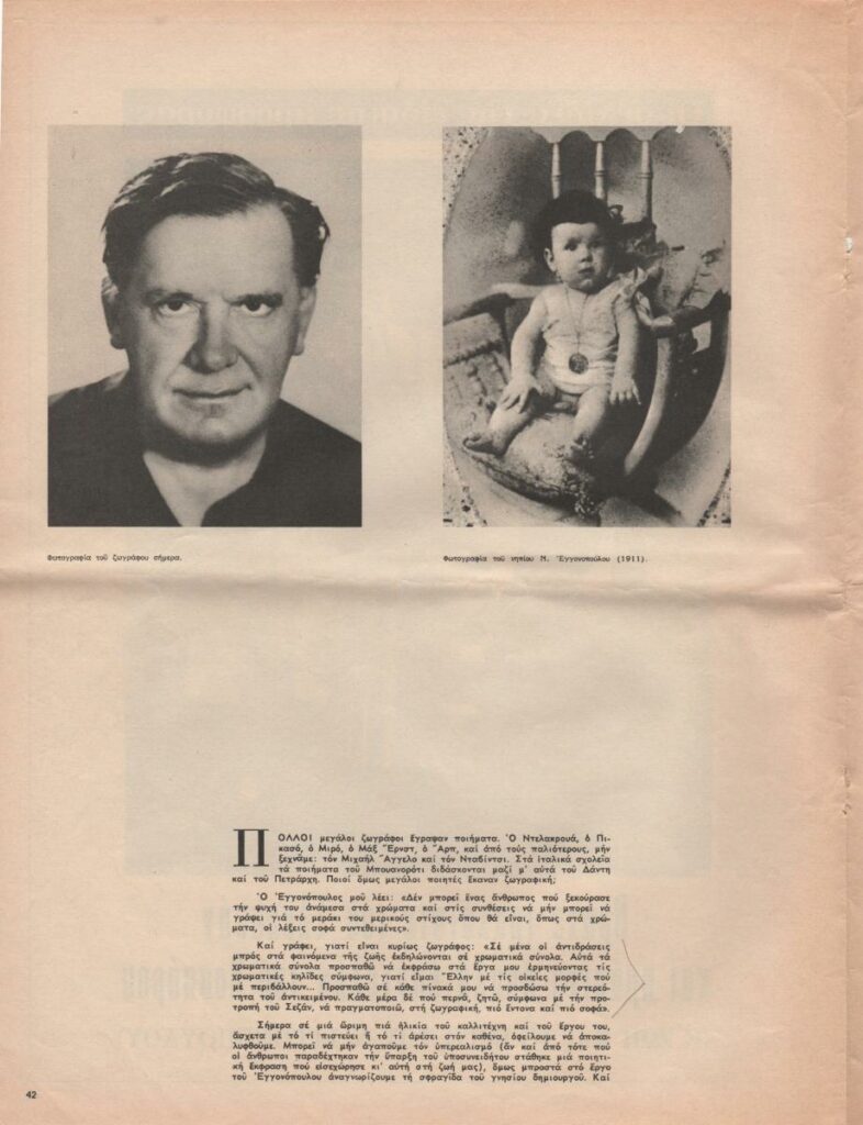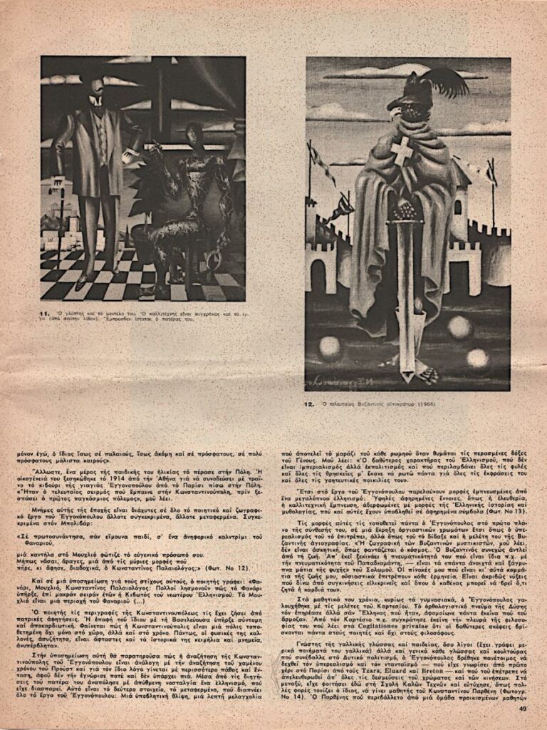 Issue of the magazine “Taxydromos”, dated February 4, 1967, dedicated to the Greek painter Nikos Engonopoulos. It contains an article by Lisa Petridi titled “The life and work of N. Engonopoulos”.