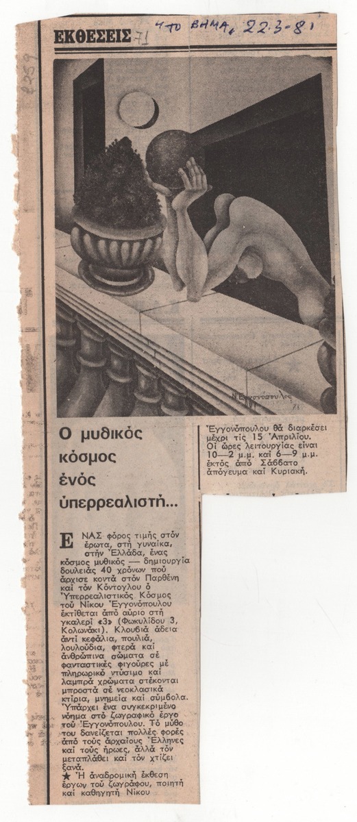 A clipping from the newspaper “To Vima”, dated March 23, 1981, featuring an article about the retrospective exhibition of the artist’s works in Athens.