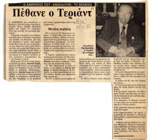 A clipping from the magazine “O Taxydromos”, featuring an advertisement of ARTINVEST silver prints with paintings by great Greek artists. Works by Tsarouchis, Engonopoulos, Malamos, Kopsidis and Prekas are reproduced.