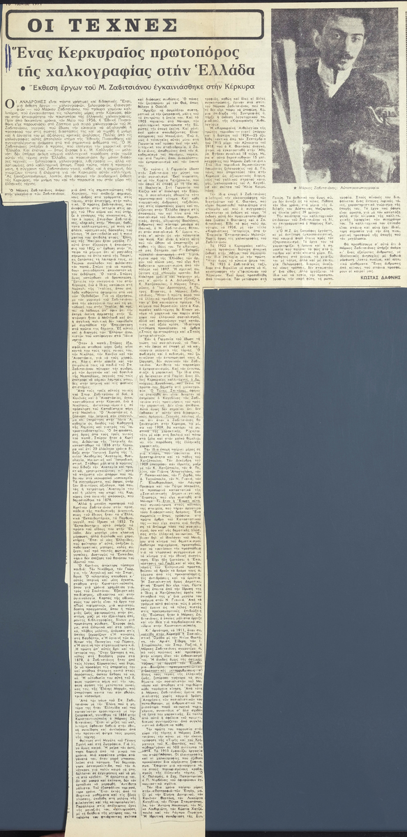 A clipping from the newspaper “To Vima”, dated June 16, 1971, featuring an article by K. Dafnis about the artist, on the occasion of his retrospective exhibition in Corfu.
