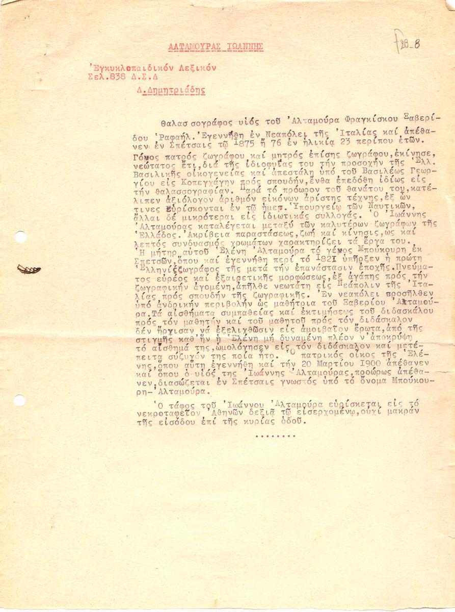 Ιωάννης Αλταμούρας (1852 - 1878) - Artist