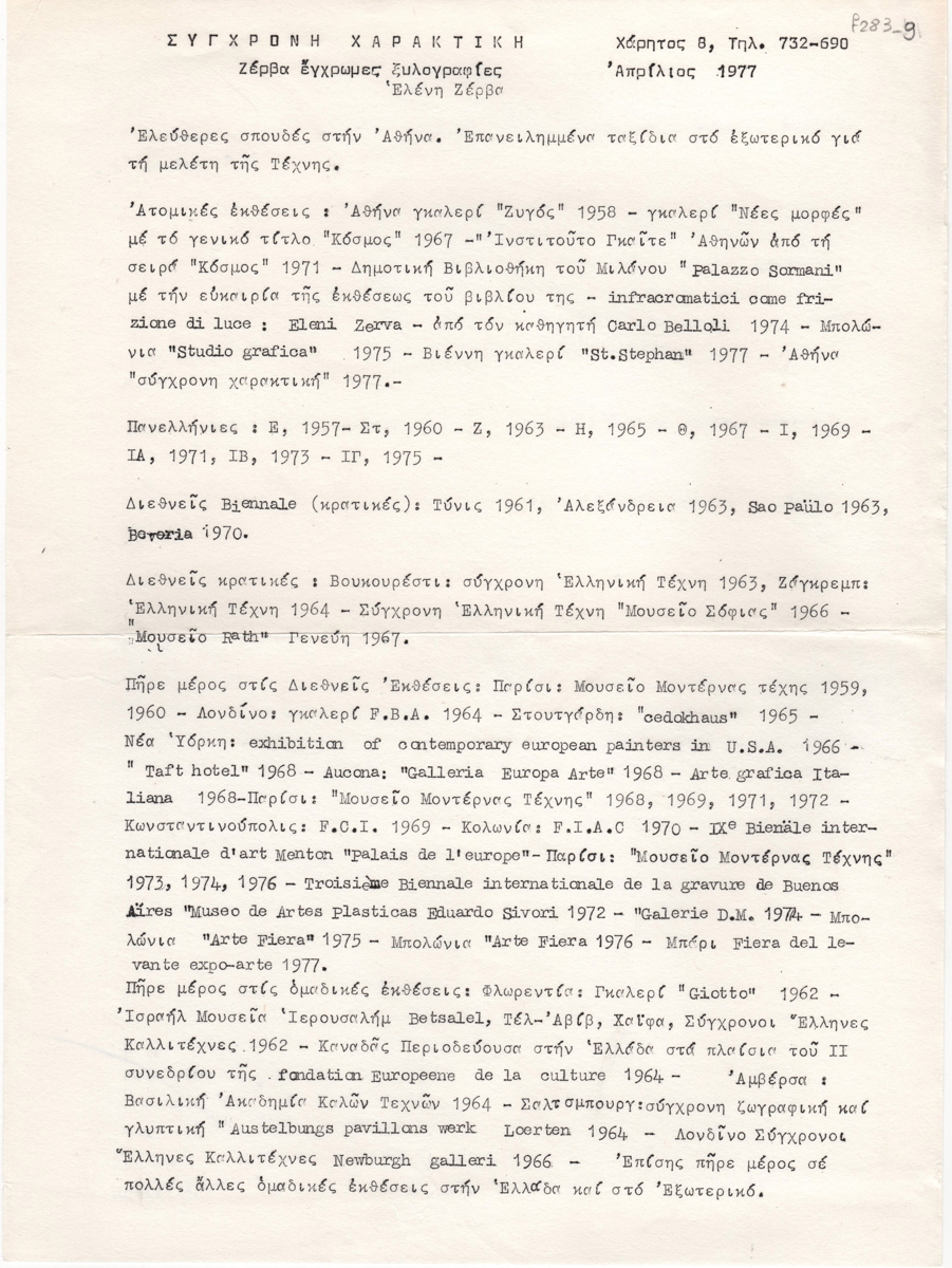 Fatouros Dimitris (1928 - 2020) ; Spiteri-Veropoulou Ioanna (1920 - 2000) ; Sachinis Nikos (1924 - 1989) ; Fassianos Alekos (1935 - 2022) ; Arlioti Lili (1908 - 1979) ; Μαρία Χατζηγάκη (1926) ; Ελένη Ζέρβα (1917 - 1993) ; Christos Lefakis (1906 - 1968)