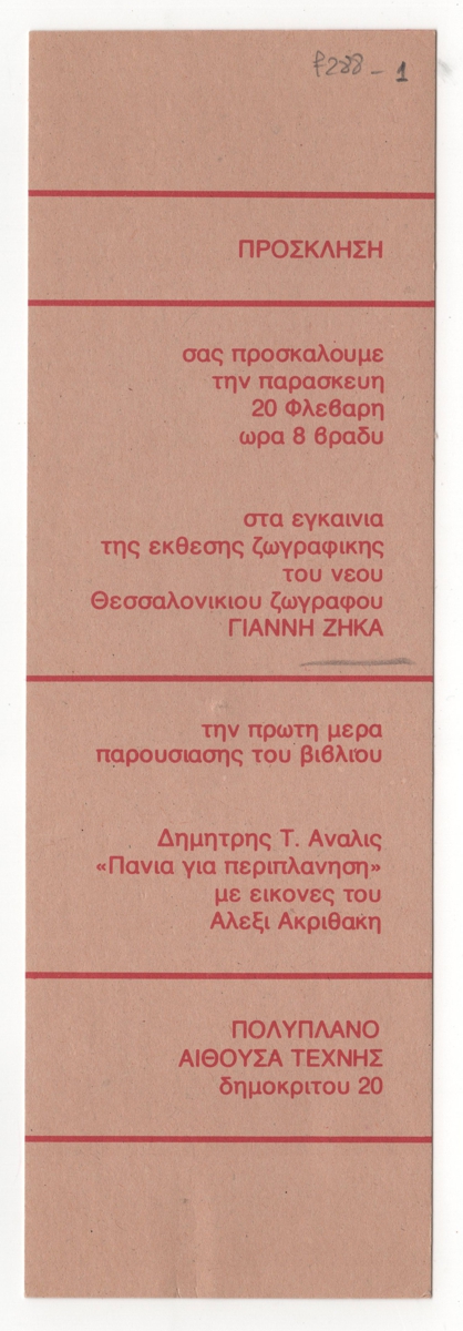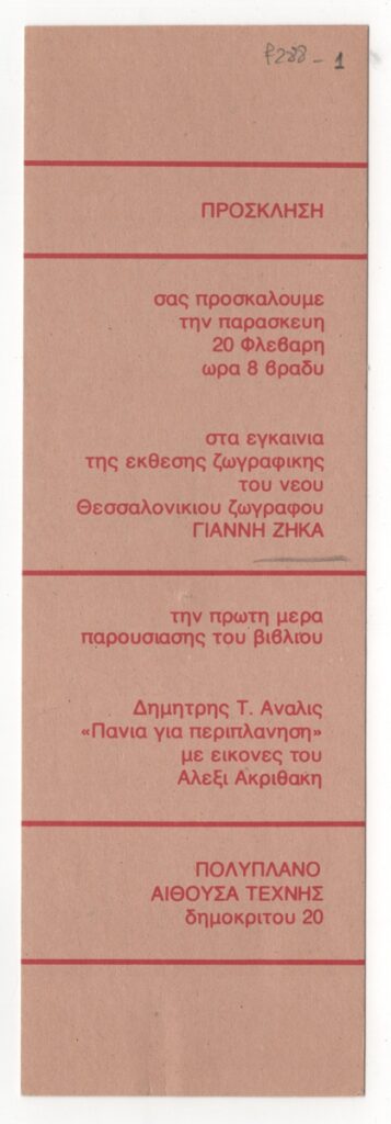 Spiteris Tonis (1910 - 1986) ; Katraki Vaso (1914 - 1988) ; Spiteri-Veropoulou Ioanna (1920 - 2000) ; José Pierre ; Michalis Katzourakis ; Fassianos Alekos (1935 - 2022) ; Simossi Gabriela (1926 - 1999) ; Tsoclis Costas (1930) ; Opy Zouni (1941 - 2008) ; Gaitis Yannis (1923 - 1984) ; Mytaras Dimitris (1934 - 2017) ; Karas Christos (1930 - 2023) ; Denis Schneider ; Vernadaki Eleni (1933) ; Takis (Vassilakis Panayiotis) (1925 - 2019) ; Sperantzas Vassilis (1938) ; Alexis Akrithakis (1939 - 1994) ; Achilleas Droungas (1940) ; Theofylaktopoulos Makis (1939 - 2023) ; Vlassis Kaniaris (1928 - 2011) ; Karavouzis Sarantis (1938 - 2011) ; Θεόδωρος Μανωλίδης (1940)