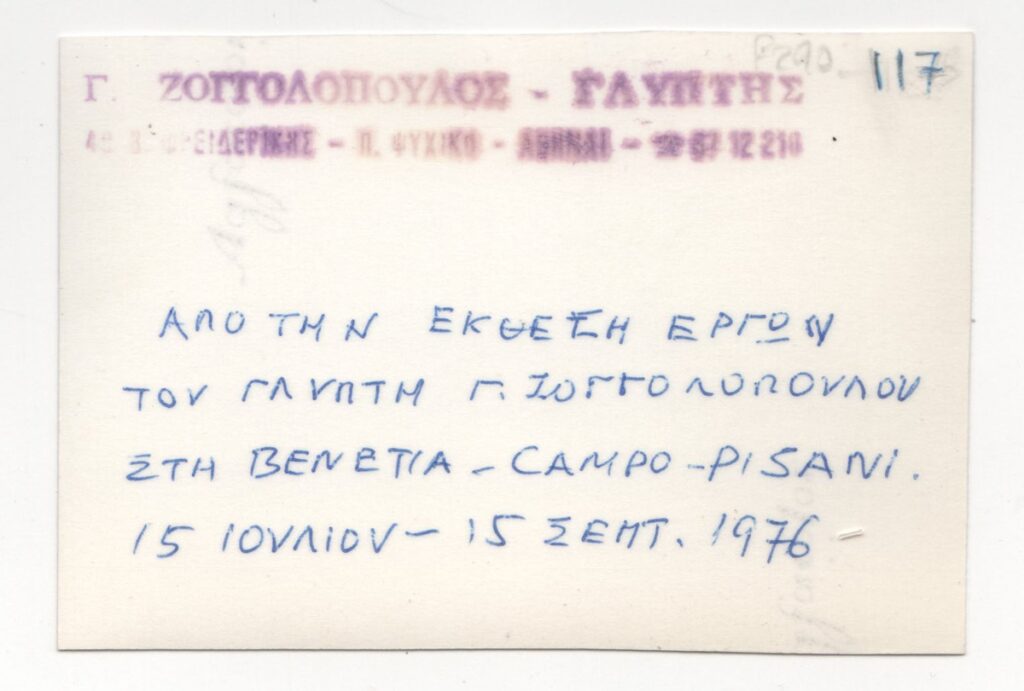 Spiteri-Veropoulou Ioanna (1920 - 2000) ; Touyas Giorgos (1922 - 1994) ; Sorogas Sotiris (1936) ; Moralis Yannis (1916 - 2009) ; Michalis Katzourakis ; Zongolopoulou Eleni (1909 - 1993) ; Simossi Gabriela (1926 - 1999) ; Constantinou Dimitris (1924 - 2010) ; Zouni Opy (1941 - 2008) ; Zongopoulos Giorgos (1903 - 2004) ; (Panagopoulos) Daniel (1924 - 2008) ; Dekoulakos Ilias (1929 - 1998) ; Karas Christos (1930 - 2023) ; Vernadaki Eleni (1933) ; Kampouridis Charis (1950) ; Apergis Antonis (1938 - 2018) ; Gravalos Panayiotis (1933 - 2015) ; Droungas Achilleas (1940) ; Kanagini Niki (1933 - 2008) ; Karachalios Kostas (1923 - 2007) ; Καίτη Αντύπα (1925 - 2006) ; Kessanlis Nikos (1930 - 2004) ; Kontos Dimitris (1931 - 1996) ; Eirini Apergi (1921 - 1994) ; Loucopoulos, Clearchos (1906 - 1995) ; Pastra Nausica (1921 - 2011) ; Κώστας Βαρώτσος (1955)