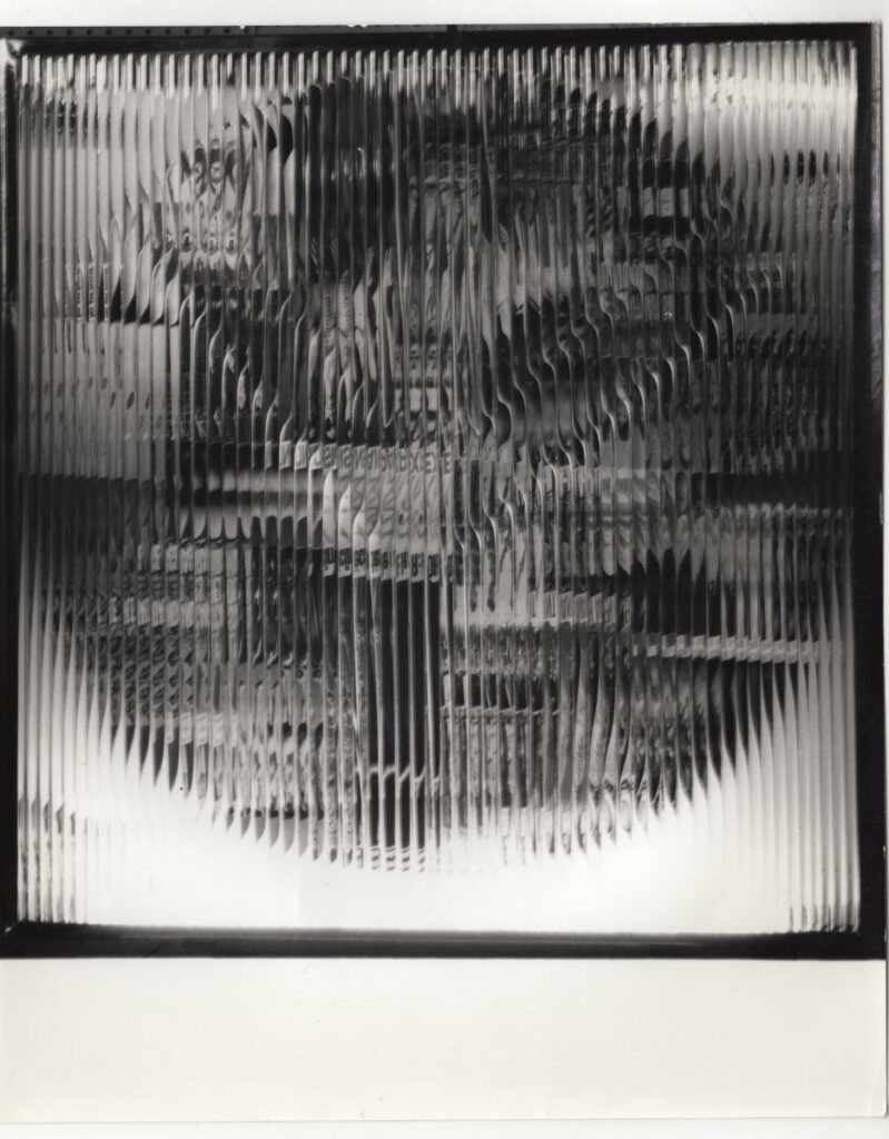Black-and-white printed photograph of an artwork model by Giorgos Zongolopoulos. On the reverse, inscriptions.