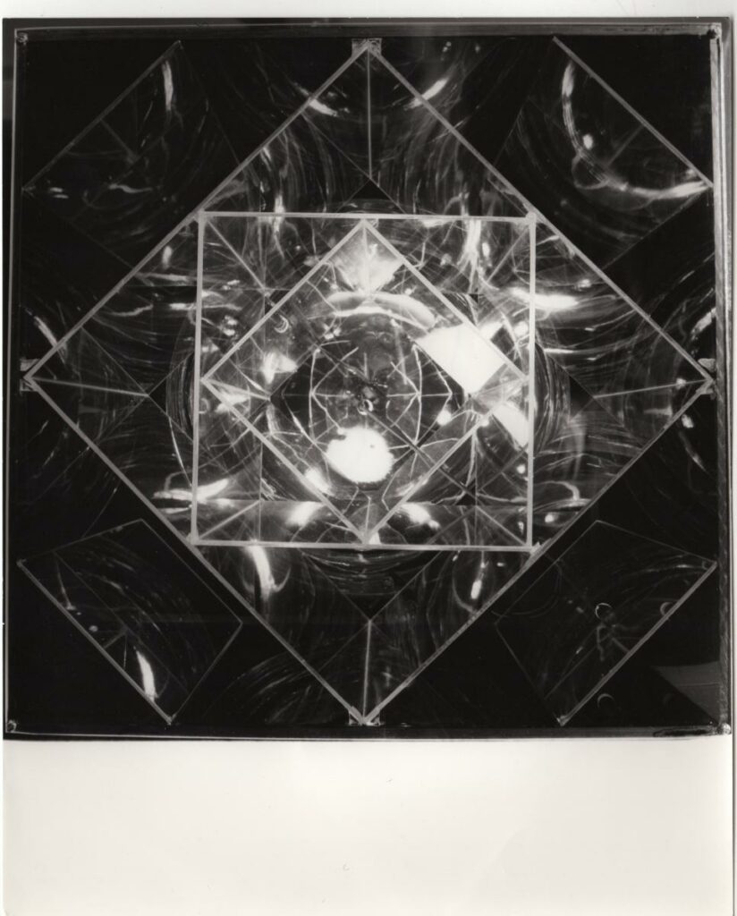 Black-and-white printed photograph of an artwork model by Giorgos Zongolopoulos. On the reverse, inscriptions.