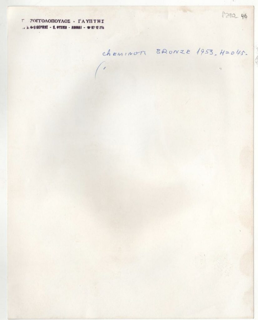Black-and-white printed photograph of a work by Giorgos Zongolopoulos. On the reverse, inscriptions