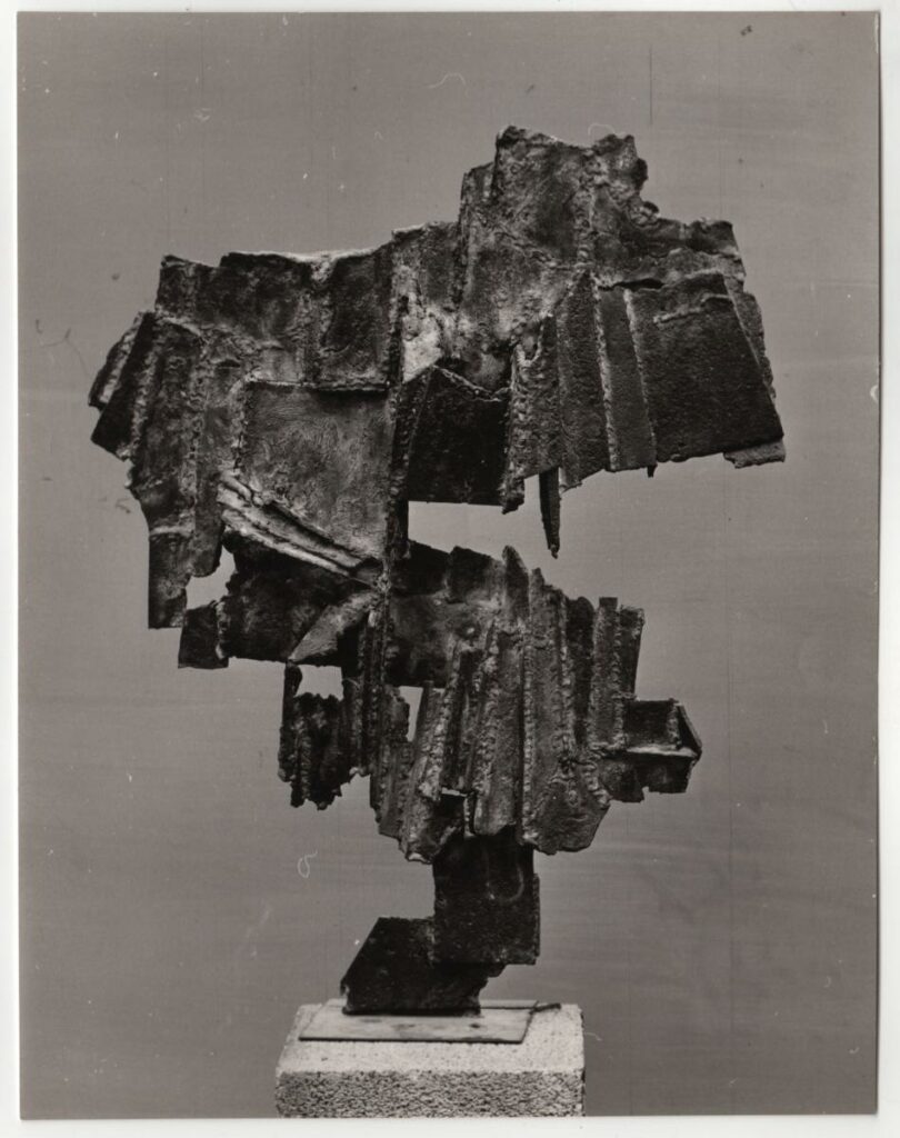 Black-and-white printed photograph of a work by Giorgos Zongolopoulos. On the reverse, inscriptions