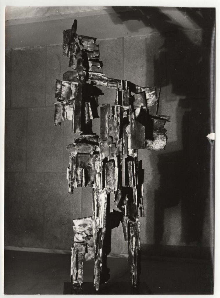 Black-and-white printed photograph of a work by Giorgos Zongolopoulos. On the reverse, inscriptions