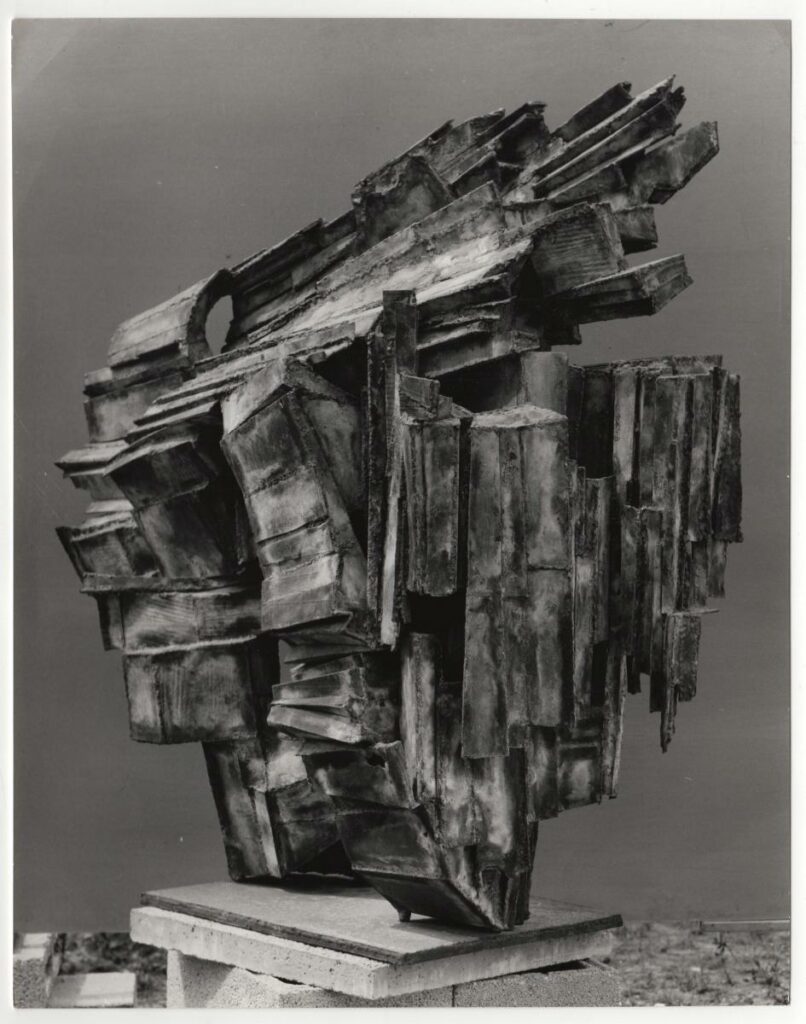 Black-and-white printed photograph of a work by Giorgos Zongolopoulos. On the reverse, inscriptions