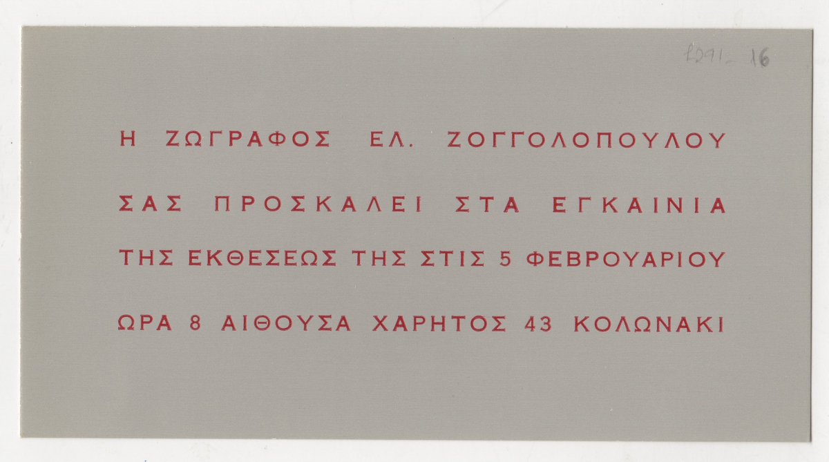Spiteri-Veropoulou Ioanna (1920 - 2000) ; Touyas Giorgos (1922 - 1994) ; Sorogas Sotiris (1936) ; Moralis Yannis (1916 - 2009) ; Michalis Katzourakis ; Zongolopoulou Eleni (1909 - 1993) ; Simossi Gabriela (1926 - 1999) ; Constantinou Dimitris (1924 - 2010) ; Zouni Opy (1941 - 2008) ; Zongopoulos Giorgos (1903 - 2004) ; (Panagopoulos) Daniel (1924 - 2008) ; Dekoulakos Ilias (1929 - 1998) ; Karas Christos (1930 - 2023) ; Vernadaki Eleni (1933) ; Kampouridis Charis (1950) ; Apergis Antonis (1938 - 2018) ; Gravalos Panayiotis (1933 - 2015) ; Droungas Achilleas (1940) ; Kanagini Niki (1933 - 2008) ; Karachalios Kostas (1923 - 2007) ; Καίτη Αντύπα (1925 - 2006) ; Kessanlis Nikos (1930 - 2004) ; Kontos Dimitris (1931 - 1996) ; Eirini Apergi (1921 - 1994) ; Loucopoulos, Clearchos (1906 - 1995) ; Pastra Nausica (1921 - 2011) ; Κώστας Βαρώτσος (1955)