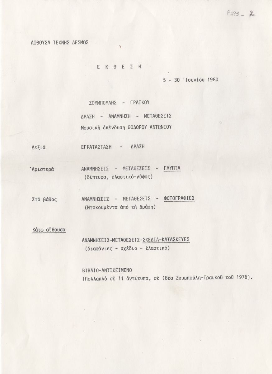 Γεώργιος Σταύρου ; Ηρώ Κωνσταντοπούλου ; Γιάννης Νικολόπουλος ; Papagiannis Theodoros (1942) ; Tsirogiannis Apostolis (1946) ; Byzantios Pericles (1893 - 1972) ; Ντέπη Φελουκατζή (1941) ; Δημήτρης Κούκος ; Christakis Leonidas (1929 - 2009) ; Christakopoulos Marinos (1946) ; Μιχάλης Γεωργάς (1947) ; Ανδρέας Γκολφινόπουλος ; Zoumpoulis Nikos (1953) ; Samios Pavlos (1948 - 2021) ; Ευάγγελος Κουζούνης ; Απόστολος Μητσάτσος ; Λάζαρος Παούρης (1950) ; Στάθης Πετρόπουλος (1944 - 2008) ; Δημήτρης Σακελλίων (1947) ; Stathopoulos Giorgos (1944) ; Liakopoulou Marilena (? - 2016) ; Χρίστος Τζιβέλος ; Μαρίνα Βασίλογλου-Αλευροπούλου (1945) ; Λευτέρης Βαλάκας (1944 - 1982) ; Καλλία ; Καραβίτης ; Νίκος Παρασκευάς ; Νίκος Σημηριώτης ; Κροντήρης ; Κυρτεγος ; Γιώργος Παπαδούκας ; Σταυρακάκη ; Αλέκα Γάτου ; Άλλεν-Ευσταθίου Τζούντιθ (1945) ; Μασονίδης ; Μπαχαρίου ; Γιώργος Χουλιαράς, εικαστικός (1947)
