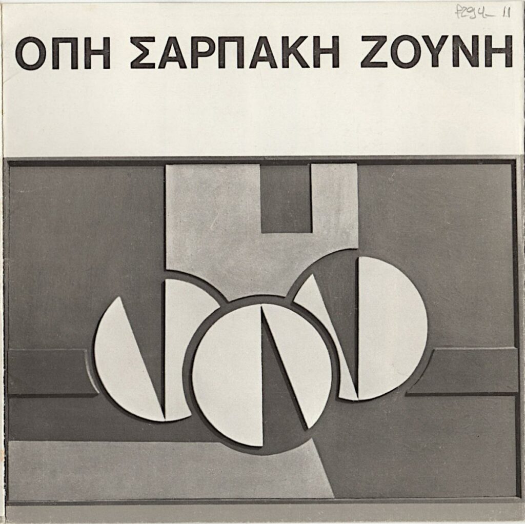 Pamphlet for a solo exhibition by Opy Zouni. It contains a biographical note of the artist in Greek and English, excerpts from reviews of the French press for the year 1970.