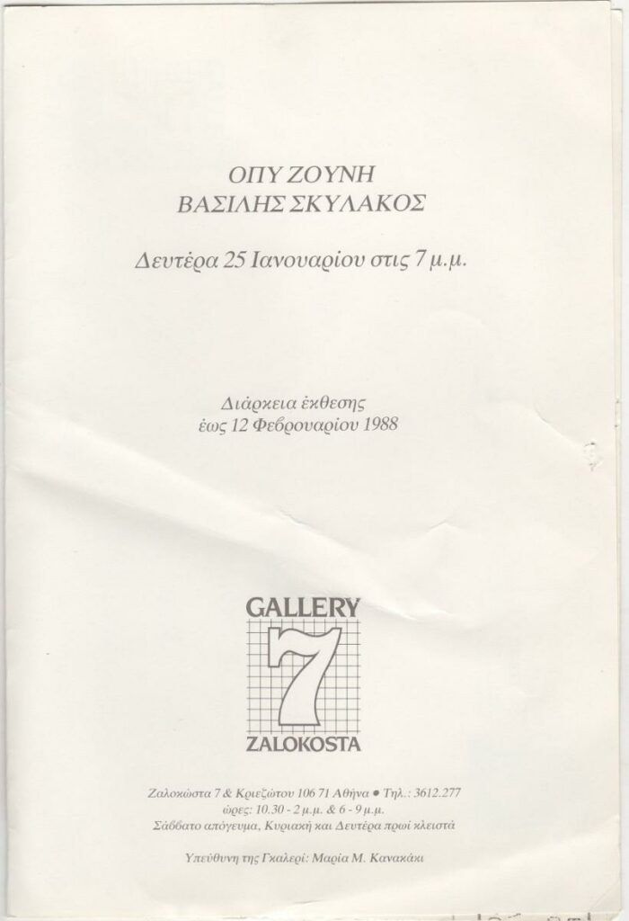 Invitation to a joint exhibition by Opy Zouni and Vassilis Skylakos at Gallery Zalokosta 7 in Athens, addressed to Ioanna Spiteri.