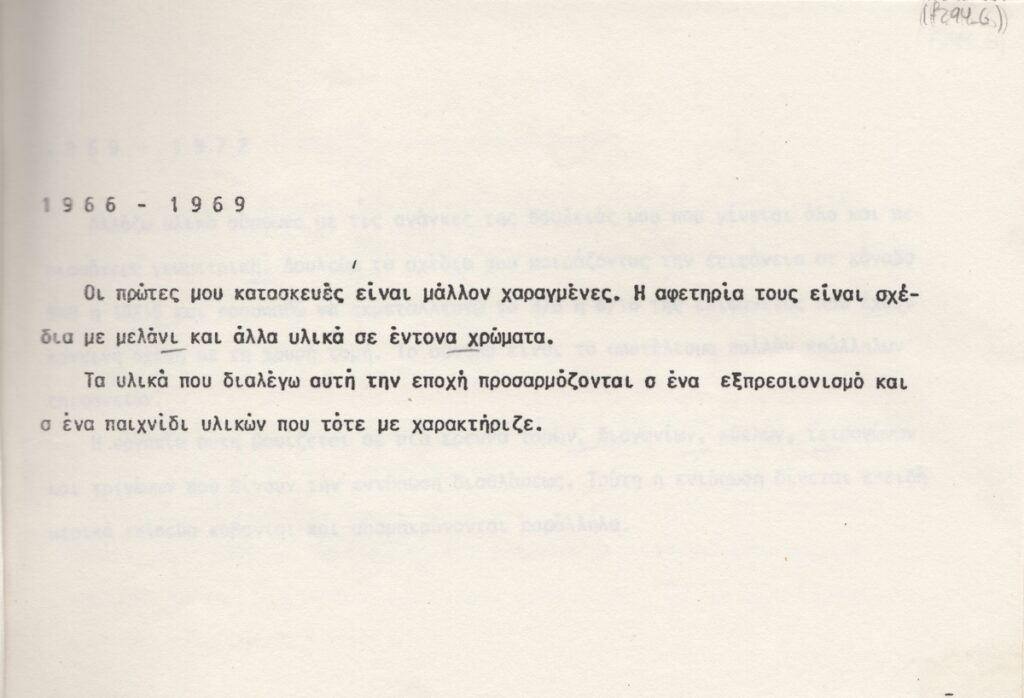 Spiteris Tonis (1910 - 1986) ; Katraki Vaso (1914 - 1988) ; Spiteri-Veropoulou Ioanna (1920 - 2000) ; José Pierre ; Michalis Katzourakis ; Fassianos Alekos (1935 - 2022) ; Simossi Gabriela (1926 - 1999) ; Tsoclis Costas (1930) ; Opy Zouni (1941 - 2008) ; Gaitis Yannis (1923 - 1984) ; Mytaras Dimitris (1934 - 2017) ; Karas Christos (1930 - 2023) ; Denis Schneider ; Vernadaki Eleni (1933) ; Takis (Vassilakis Panayiotis) (1925 - 2019) ; Sperantzas Vassilis (1938) ; Alexis Akrithakis (1939 - 1994) ; Achilleas Droungas (1940) ; Theofylaktopoulos Makis (1939 - 2023) ; Kaniaris Vlassis (1928 - 2011) ; Karavouzis Sarantis (1938 - 2011) ; Θεόδωρος Μανωλίδης (1940)