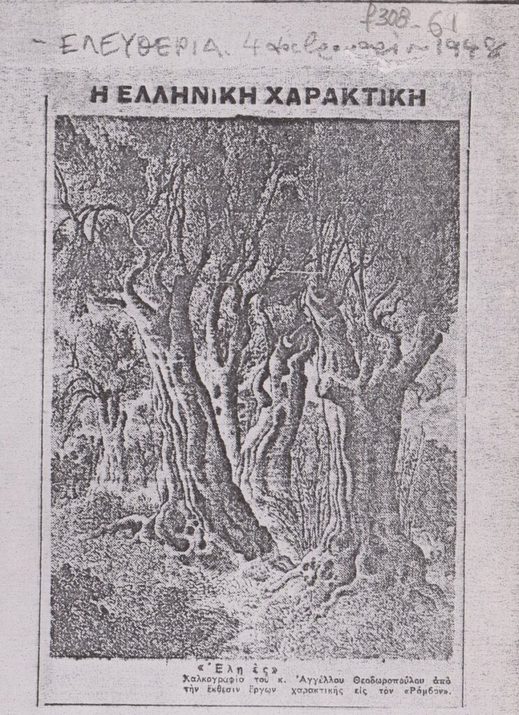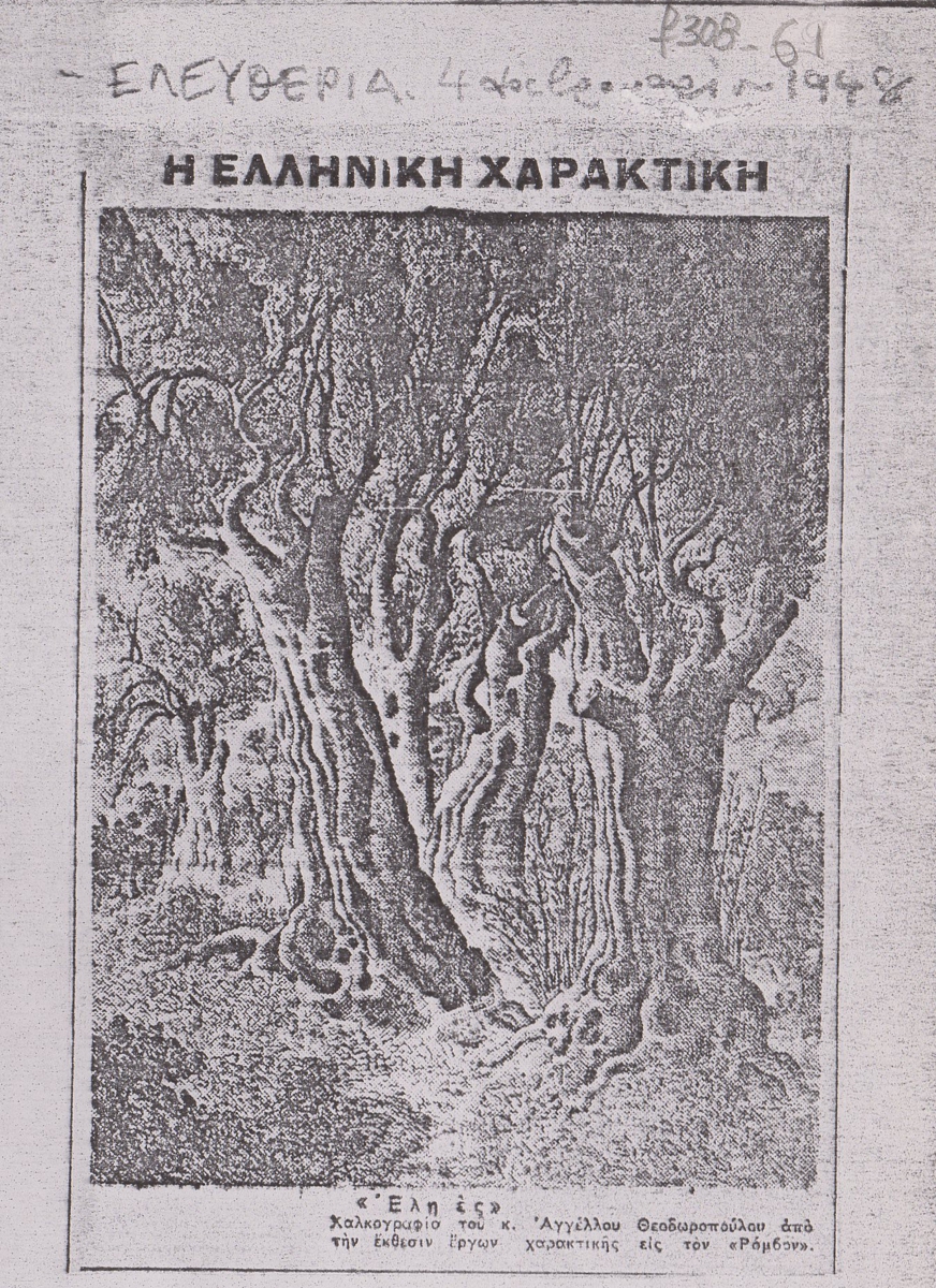 Katraki Vaso (1914 - 1988) ; Valsamakis Panos (1900 - 1986) ; Vassiliou Spyros (1902 - 1985) ; Orestis Kanellis (1910 - 1979) ; Tassos (Anastasios Alevizos) (1914 - 1985) ; Eleni Vakalo (1921 - 2001) ; Hatzikyriakos-Ghika Nikos (1906 - 1994) ; Papaloukas Spyros (1892 - 1957) ; Asteriadis Aghinor (1898 - 1977) ; Τέρψη Κυριακού (1916 - 1993) ; Sikeliotis Giorgos (1917 - 1984) ; Migadis Yannis (1926 - 2017) ; Houtopoulou-Contaratou Sosso (1923 - 1984) ; Yannis Grammatikopoulos (1928) ; Kapralos Christos (1909 - 1993) ; Argyrakis Minos (1920 - 1998) ; Markellos Thodoros (1925 - 2015) ; Arlioti Lili (1908 - 1979) ; Kontopoulos Alekos (1904 - 1975) ; Vakalo Giorgos (1902 - 1991) ; Karantinos Sokratis (1906 - 1979) ; Nikos Gavriil Pentzikis (1908 - 1993) ; Houtzoumi Vera (1920 - 2007) ; Νικόλαος Βλαβιανός (1929) ; Χαρίκλεια Αλεξανδρίδου-Στεφανοπούλου (1889 - 1963) ; Ελένη Θεοχάρη-Περάκη ; Zachariou Fotis (1909 - 2001) ; Zepos-Alafouzos Emmanuel (1905 - 1995) ; Theodoropoulos Angelos (1883 - 1965) ; Μαρία Αναγνωστοπούλου-Βρανίκα (1890 - 1971) ; Δημήτριος Κεντάκας ; Άγγελος Κόντης (1912 - 2005) ; Manousakis Giorgos (1914 - 2003) ; Ιωάννα Ασμάνη (1929) ; Aglaia Papa (1904 - 1984) ; Paralis Giorgos (1908 - 1975) ; Kostas Plakotaris (1902 - 1969) ; Stamatopoulos Stamatis ; Anagnostopoulos Giorgos (20th century) ; Vampoulis Petros (1929) ; Φώτης Φωτιάδης ; Μιχαήλ Κανάκης