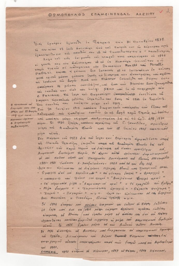 Bouzianis Giorgos (1885 - 1959) ; Vyzantios Periclis (1893 - 1972) ; Γεράσιμος Βώκος ; Chatzis Vasileios (1870 - 1915) ; Aristotelis Zachos (1871 - 1939) ; Epameinondas Thomopoulos (1878 - 1974)