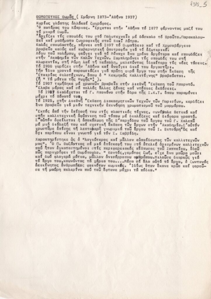 Spiteri-Veropoulou Ioanna (1920 - 2000) ; Apartis Thanasis (1899 - 1972) ; Efthymiadi-Menegaki Frosso ; Thomopoulos Thomas (1873 - 1937) ; Γεώργιος Γεωργιάδης ; Emmanouelides, Manolis (1924) ; Pappas Giannis (1913 - 2005) ; Prekas Paris (1926 - 1999) ; Αμαλία Βαμβάκου (1925 - 2014) ; Δήμητρα Τσερκέζου (1920 - 2007)