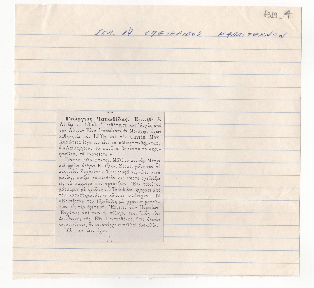 Georgios Iakovidis (1853 - 1932) ; Lytras Nikiforos (1832 - 1904) ; Mathiopoulos Pavlos (1876 - 1956)