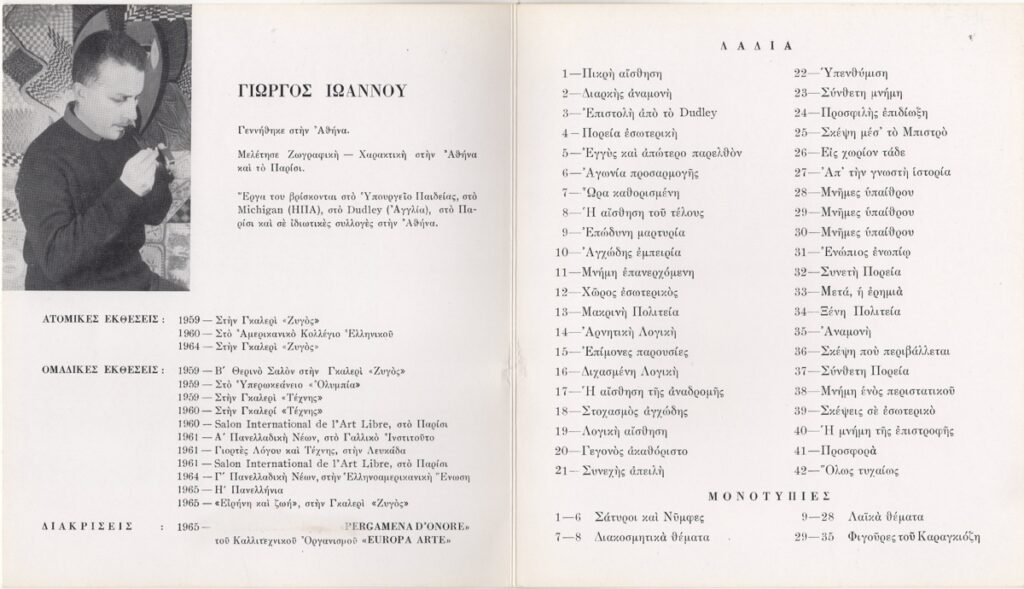 Ioannou Giorgos (1926 - 2017) ; Ioannou Giorgos (1926 - 2017) ; Vassiliou Spyros (1902 - 1985) ; Ioannou Giorgos, fiction writer (1927 - 1985) ; Moralis Yannis (1916 - 2009) ; Spyropoulos Yannis (1912 - 1990) ; Tsarouchis Yannis (1910 - 1989) ; Gaitis Yannis (1923 - 1984) ; Mytaras Dimitris (1934 - 2017) ; Ioannou Olga (20th century) ; Christou Chrysanthos (1922 - 2016) ; Apergis Antonis (1938 - 2018) ; Nikos Nikolaou (1909 - 1986) ; Πέτρος Ζουμπουλάκης (1937) ; Palaiologos Theologou (1930 - 2017) ; Kessanlis Nikos (1930 - 2004) ; Στρατής Μεντάκης ; Prekas Paris (1926 - 1999) ; Brian Hunt ; Απόστολος Πειρουνίδης ; Έπη Νικολακοπούλου ; Ανδρέας Σχοινοχωρίτης ; Xonoglou Dimitris (1949)