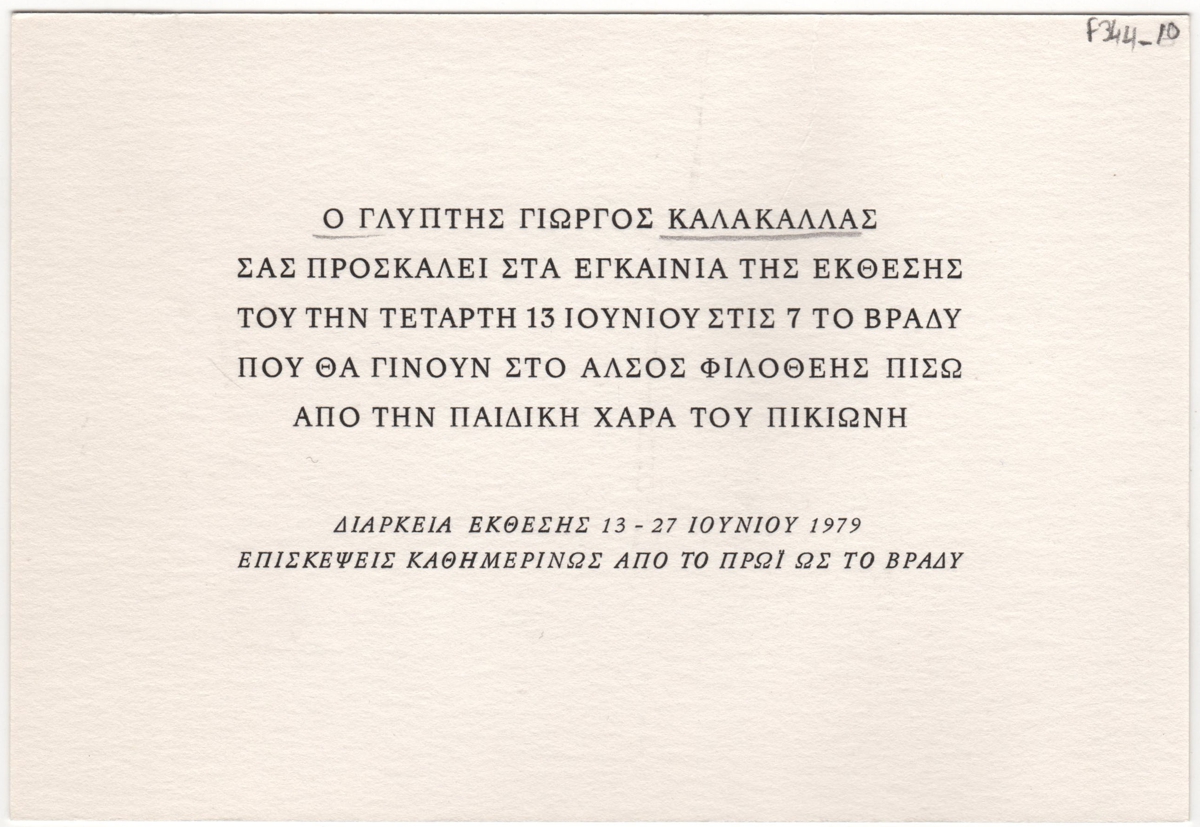 Spiteri-Veropoulou Ioanna (1920 - 2000) ; Gerolymatos Dionysios (1938 - 2020) ; Χρήστος Γεωργίου ; Georgios Kalakallas (1938 - 2021) ; Ledaki Maria (1932) ; Paouris Lazaros (1950) ; Κώστας Πολυχρονόπουλος ; Κώστας Δομπούλας ; Elvio Becheroni (1934 - 2000) ; Katapodis Spyros (1933 - 1998) ; Berlini ; Νίκος Παρασκευάς (1940) ; Χαράλαμπος Δαραδήμος ; Βασίλης Δωρόπουλος ; Τάσος Μουζάκης