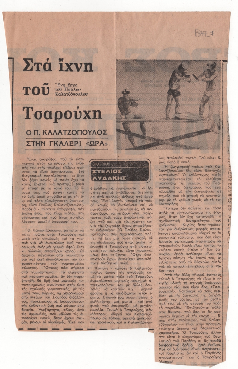 Spiteri-Veropoulou Ioanna (1920 - 2000) ; Vafeiadis Markos (1906 - 1992) ; Raftopoulou Bella (1902 - 1992) ; Pavlos (Dionyssopoulos) (1930 - 2019) ; Christoforou John (1921 - 2014) ; Fassianos Alekos (1935 - 2022) ; Μανώλης Καλλιγιάννης ; Simossi Gabriela (1926 - 1999) ; Tsarouchis Yannis (1910 - 1989) ; Tsoclis Costas (1930) ; (Panagopoulos) Daniel (1924 - 2008) ; Kostas Koulentianos (1918 - 1995) ; Vyzantios Ntikos (1924 - 2007) ; Tzolaki Rena (1930) ; Angelopoulos Aristomenis (1900 - 1990) ; Philolaos (Tloupas) (1923 - 2010) ; Fokas Yannis (1951) ; Κώστας Χαραλαμπίδης (1946) ; Pierrakos Alkis (1920 - 2017) ; Sperantzas Vassilis (1938) ; Karavouzis Sarantis (1938 - 2011) ; Yulika Lakeridou (1940) ; Kindynis Anna (1914 - 2003) ; Kriezi Tita (1930 - 2021) ; Lyberaki Aglaia (1923 - 1985) ; Κώστας Μακρής ; Maltezos Yannis (1915 - 1987) ; Molfesis Iasson (1925 - 2009) ; Κωνσταντίνος Μόραλης ; Bouteas Yannis (1941 - 2026) ; Xenakis Constantinos (1931 - 2020) ; Pastra Nausica (1921 - 2011) ; Gisele Πράσινου ; Tsekoura, Vassiliki (1947) ; Πάνος Ελευθερίου ; Δημήτρης Ράτσικας (1946) ; Νίκος Δαμιανάκης (1920 - 2005) ; Pantelias Miltos (1954) ; Νίκος Τσιώτης ; Εριέττα Βορδώνη (1959) ; Κωνσταντίνος Γιαννικούρης